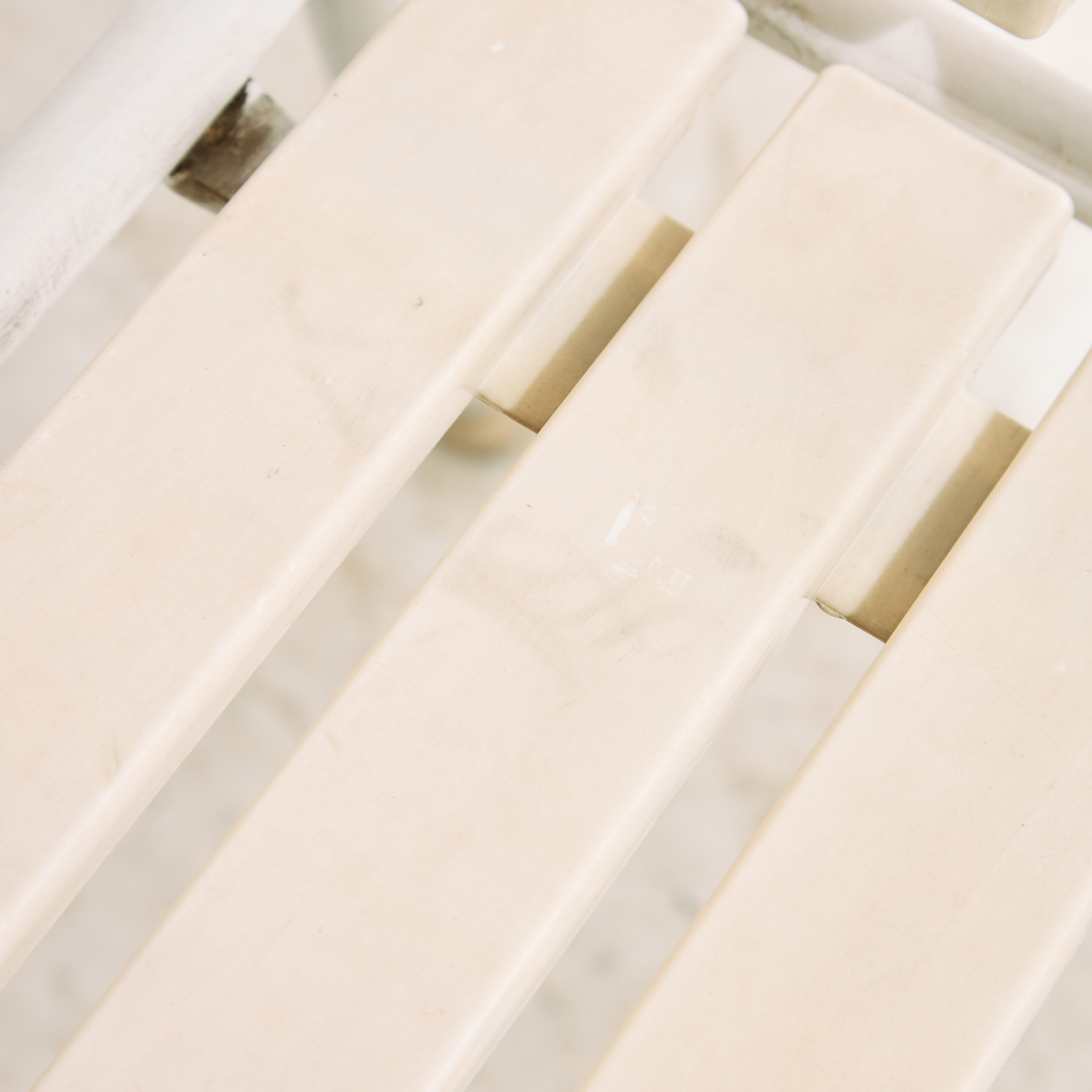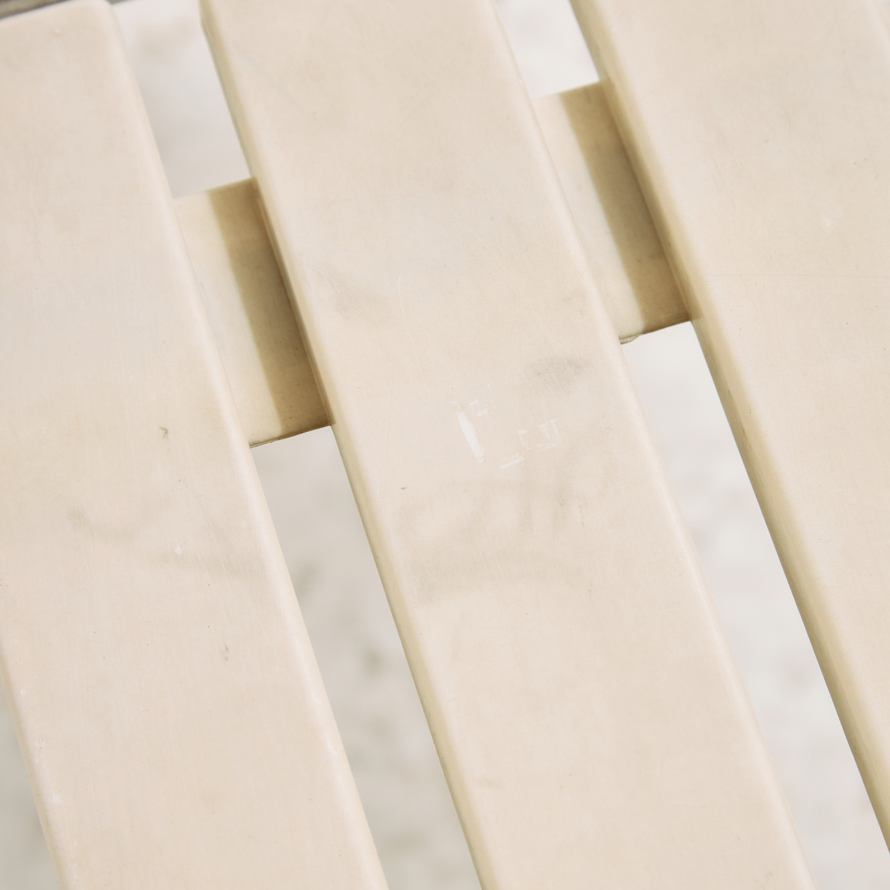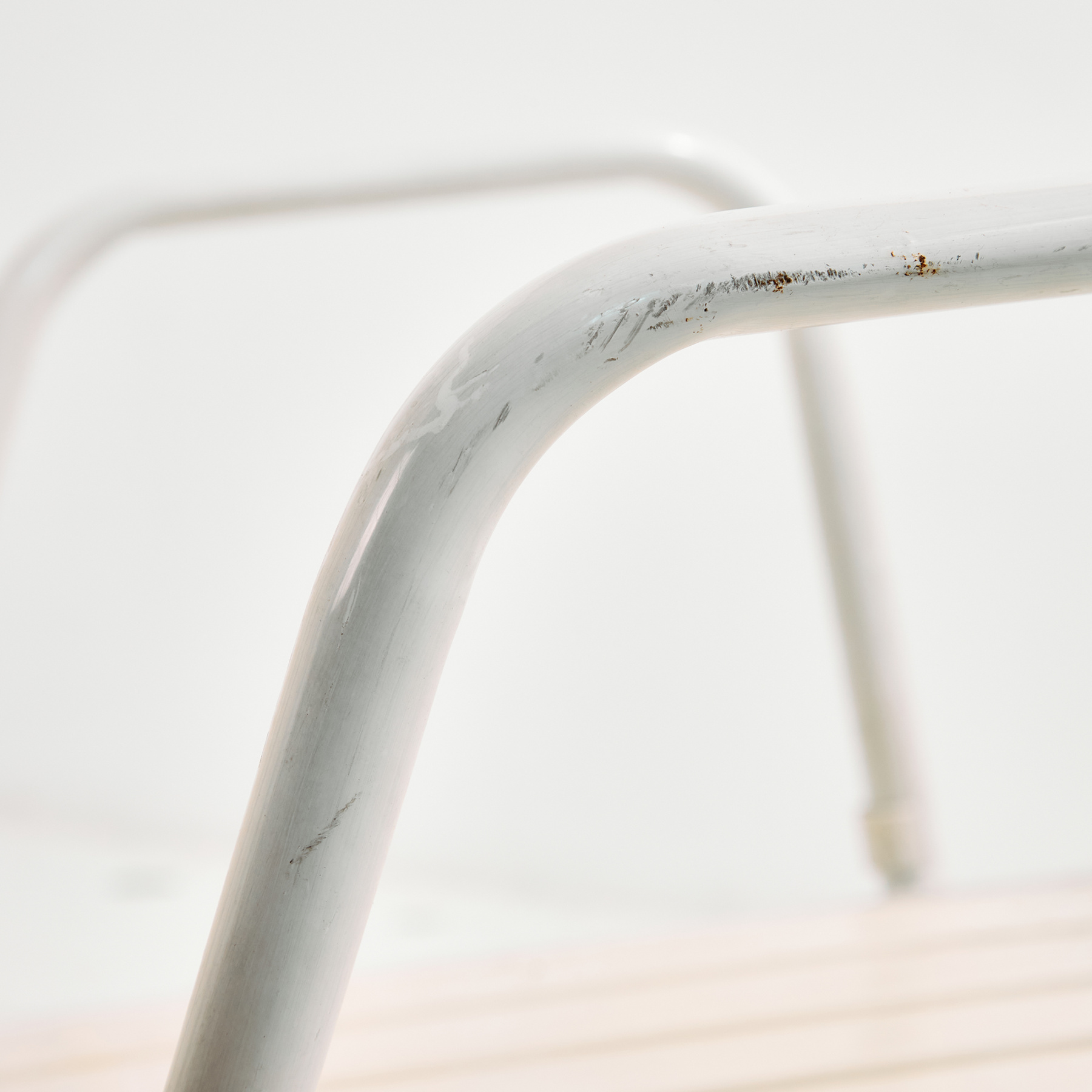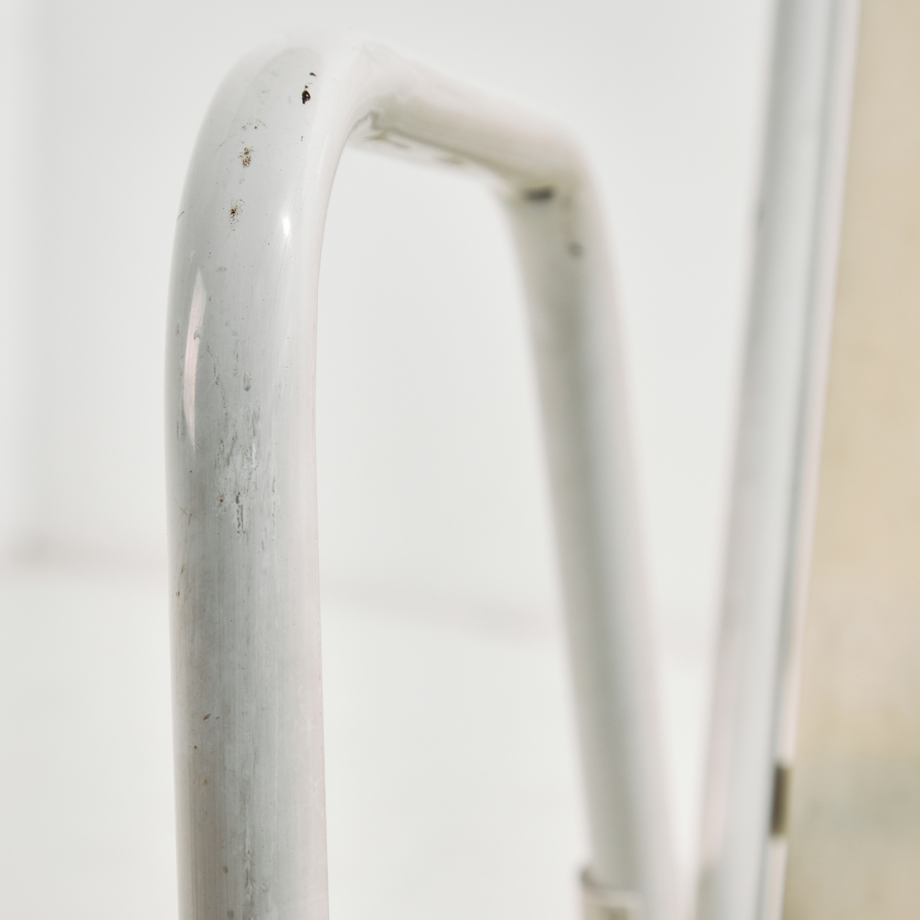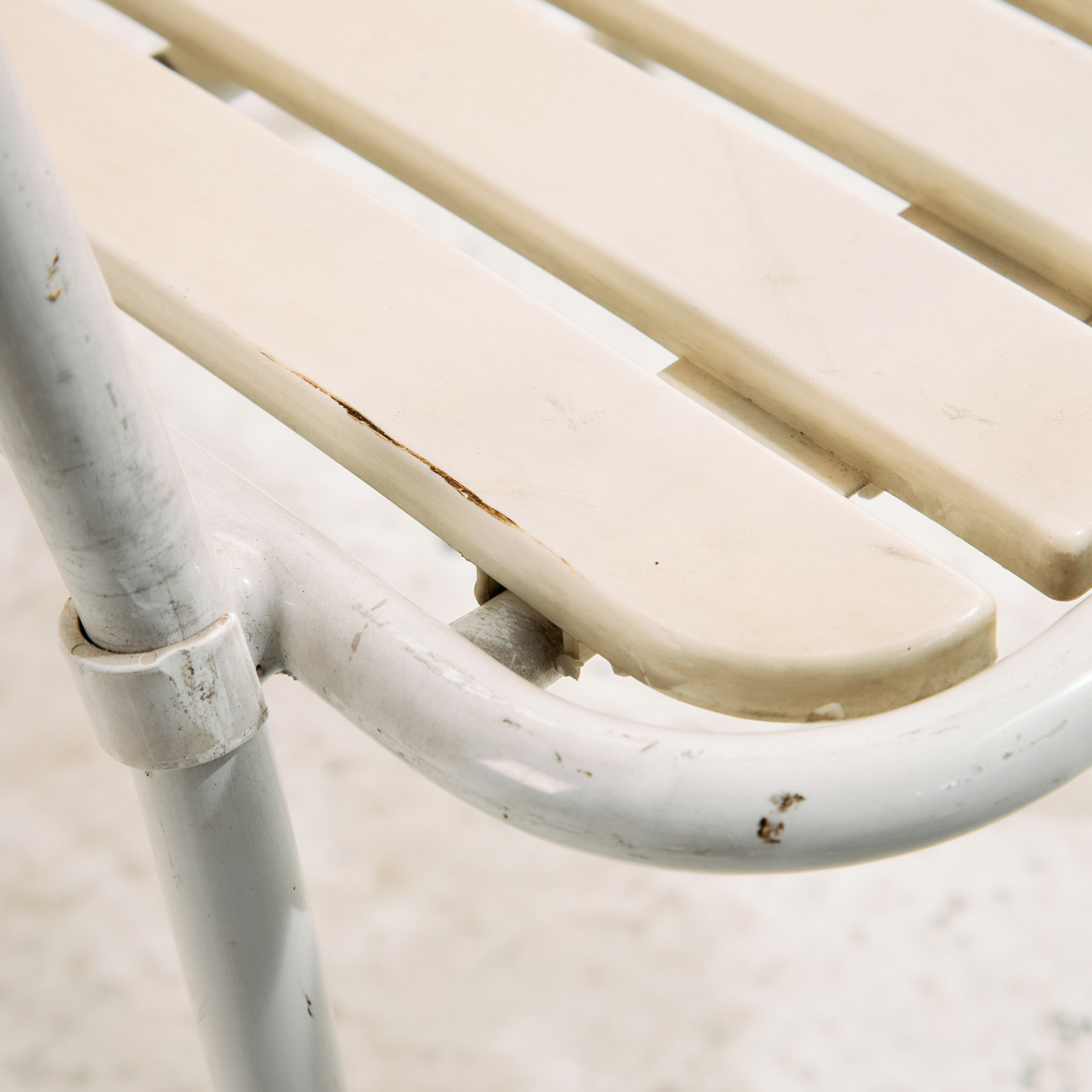 Osztrák Karasek kerti karosszék fém csővázas szerkezettel és műanyag ülő- és háttámla résszel az 1980-as évekből. A karosszék felületén helyenként karcokkal, foltokkal és kopásokkal. Kertek, teraszok vagy akár belső terek dekorálására is alkalmas lehet.