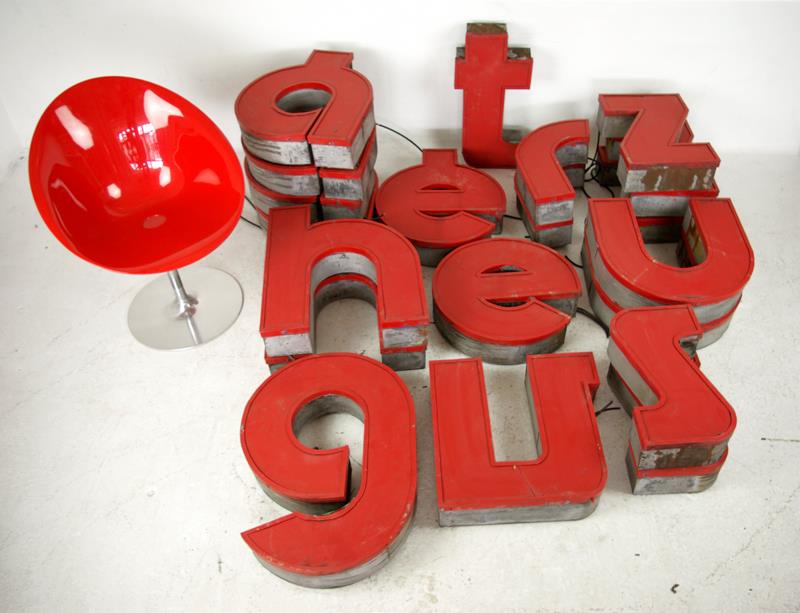 Kerek vonalú piros fém betűk