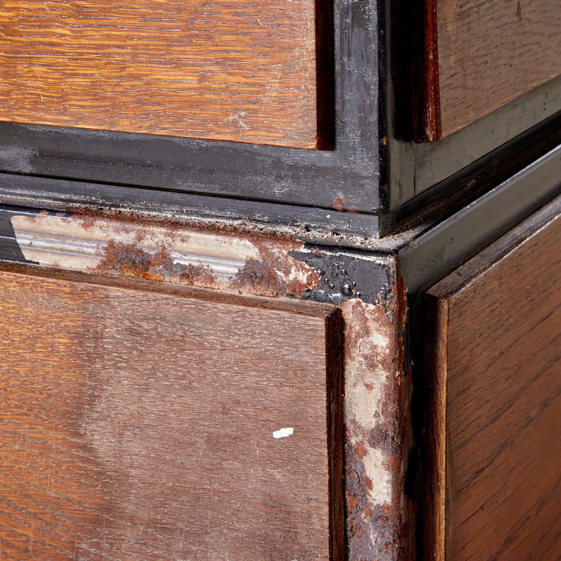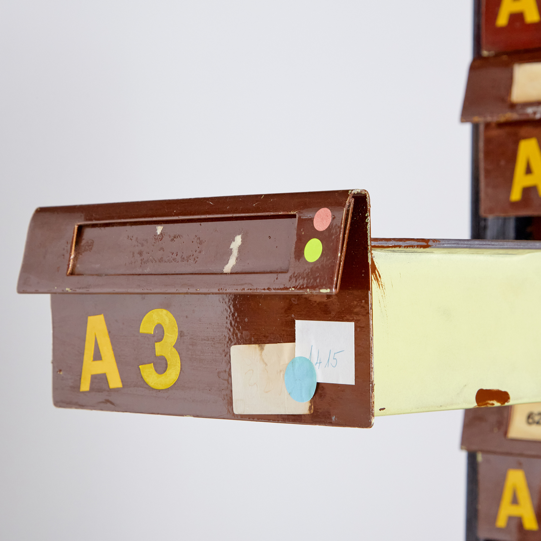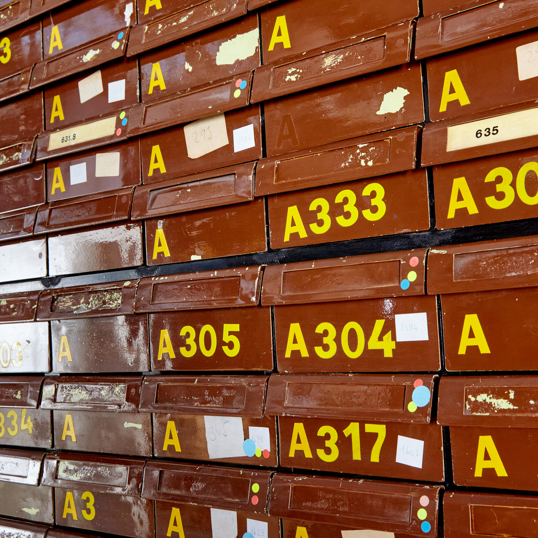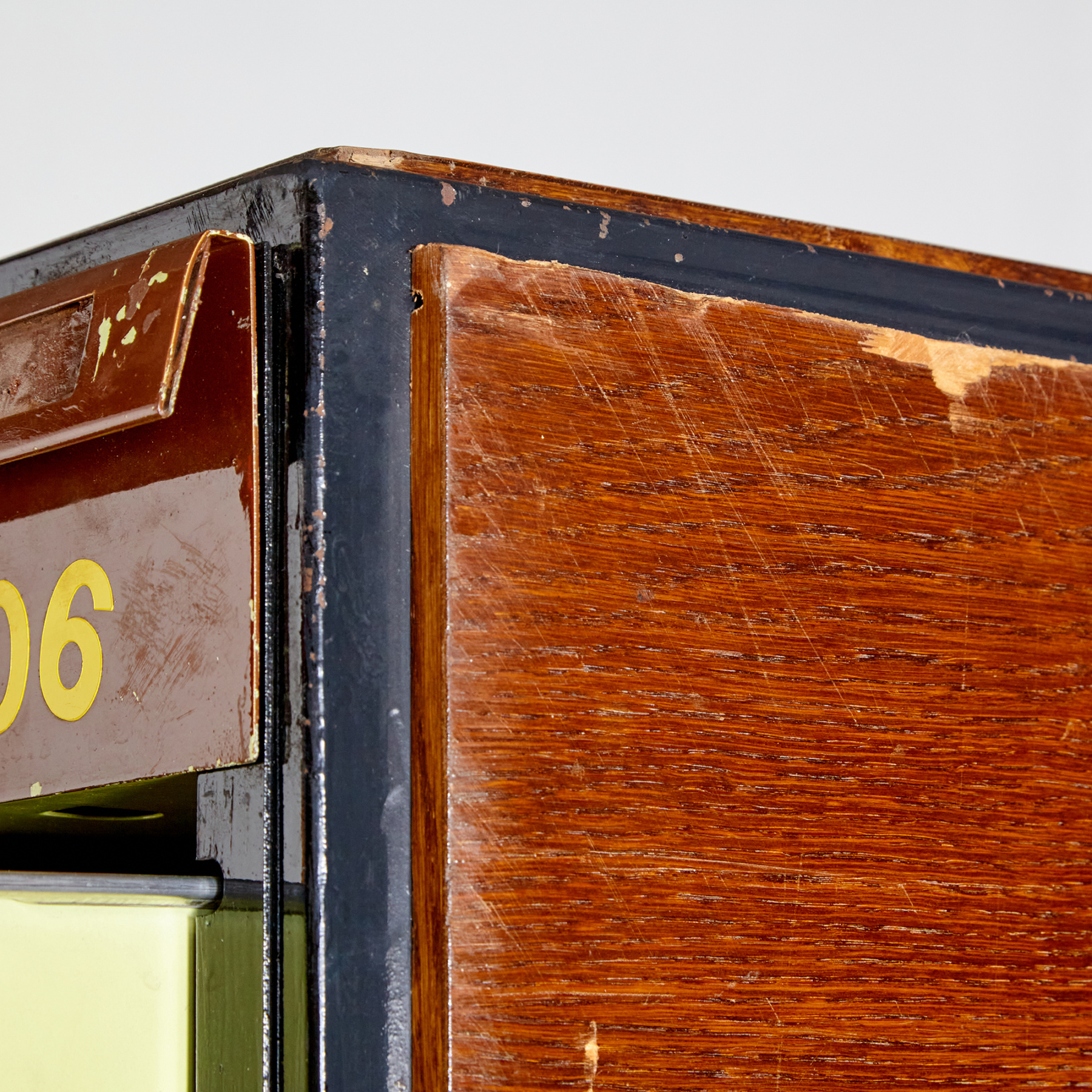 Vintage állapotú könyvtári kartotékszekrény fém fiókokkal és két ajtóval, korának megfelelő állapotban