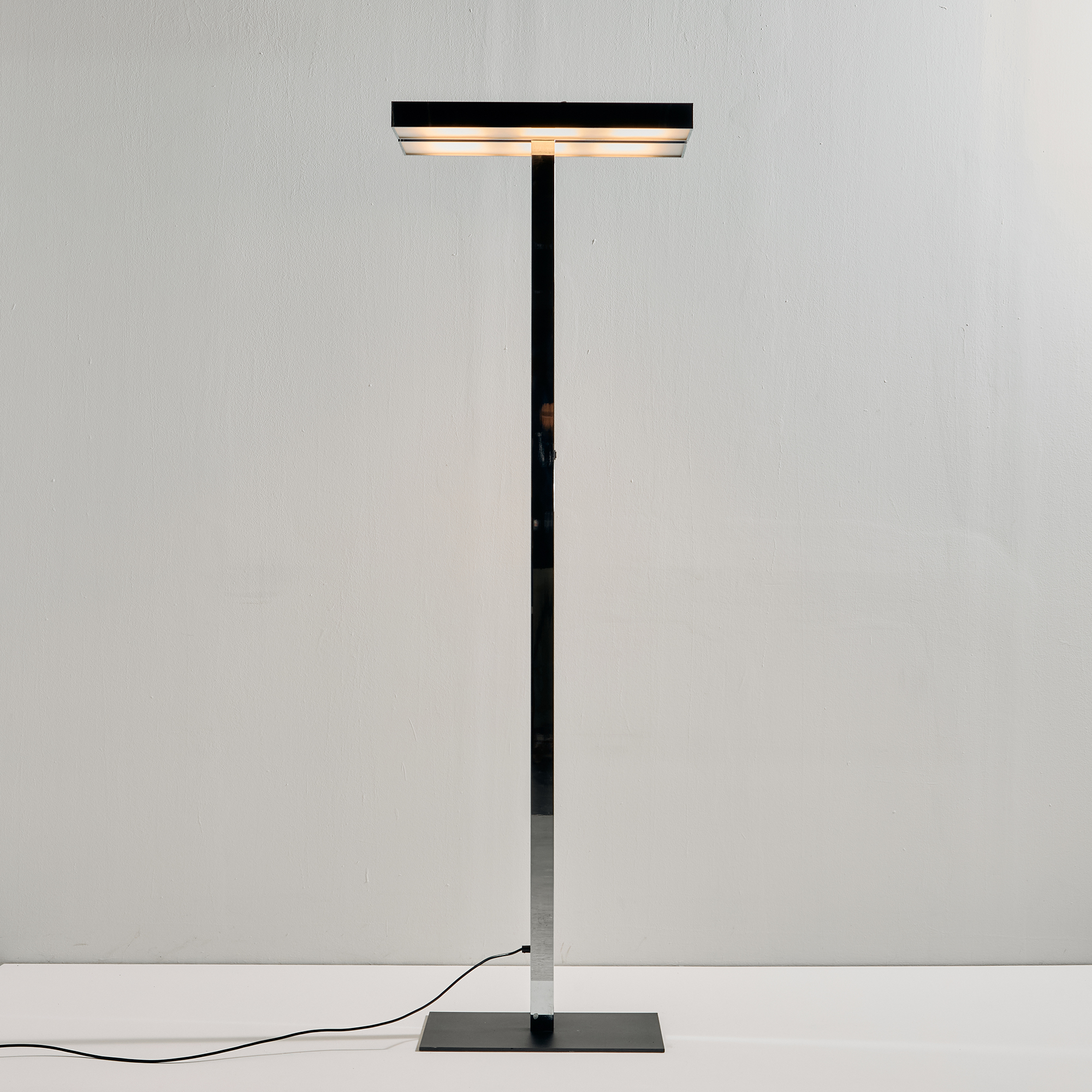 Lightnet ‘Cubic-S’ állólámpa a 2000-es évekből. Egy igazán minimalista és letisztult darab, ami irodai és otthoni környezetben is egyaránt megállja a helyét. Fém felületén helyenként karcokkal, foltokkal és kopásokkal.