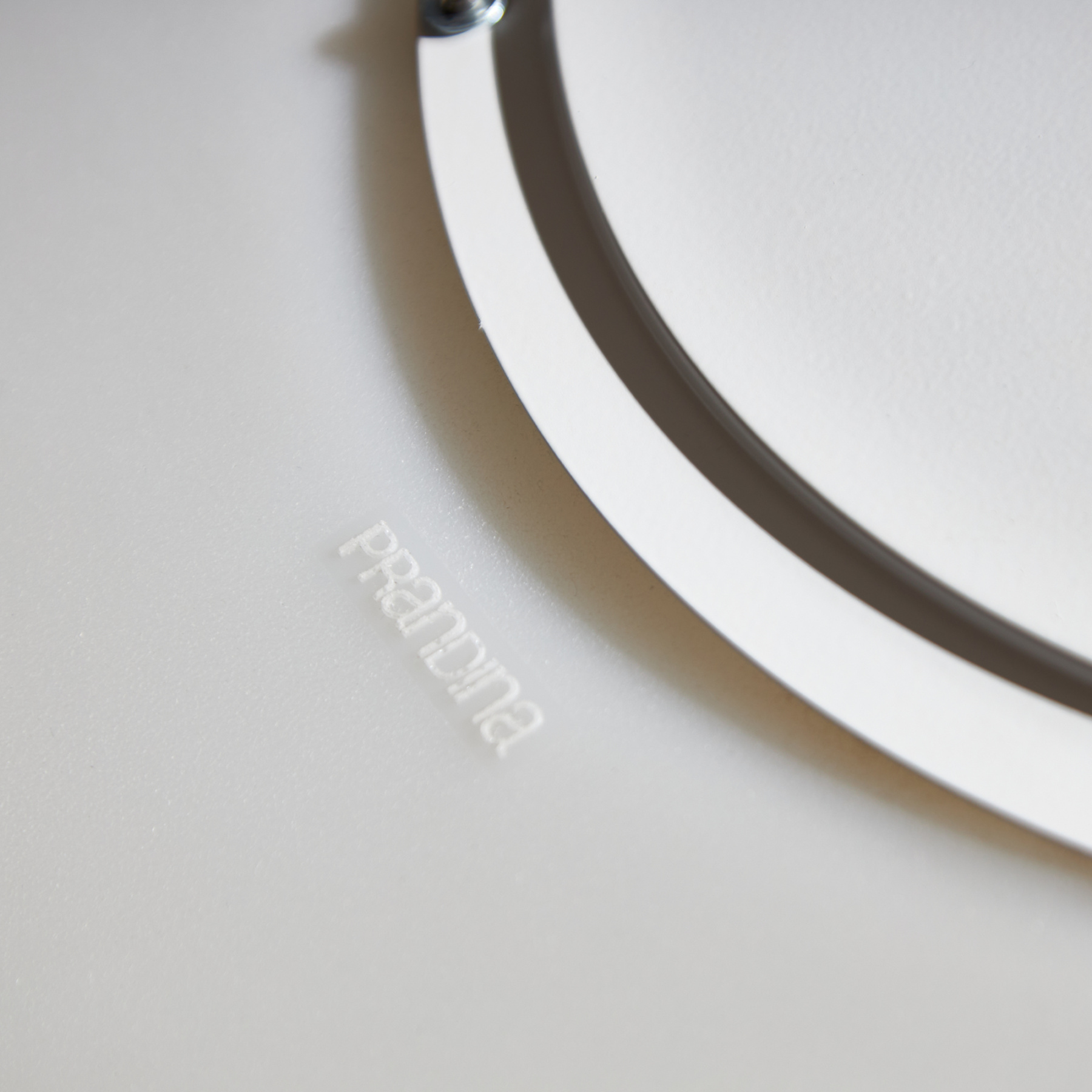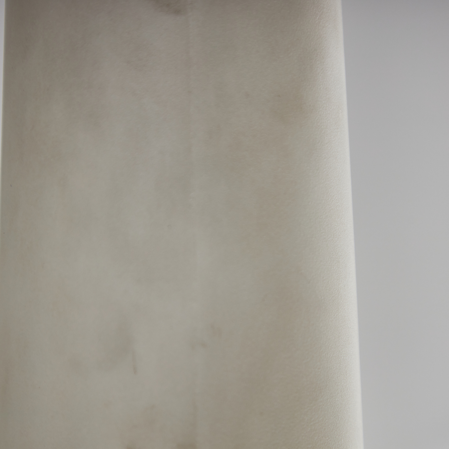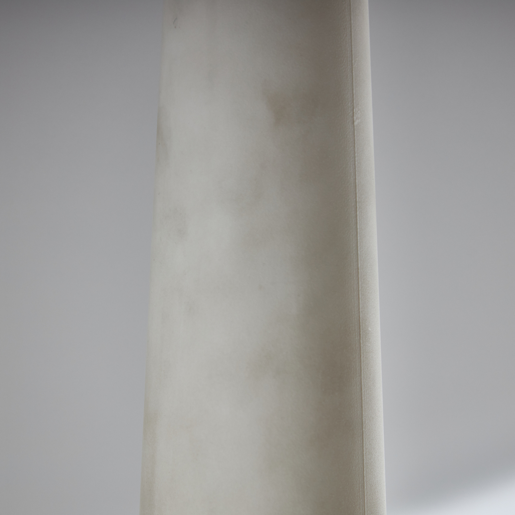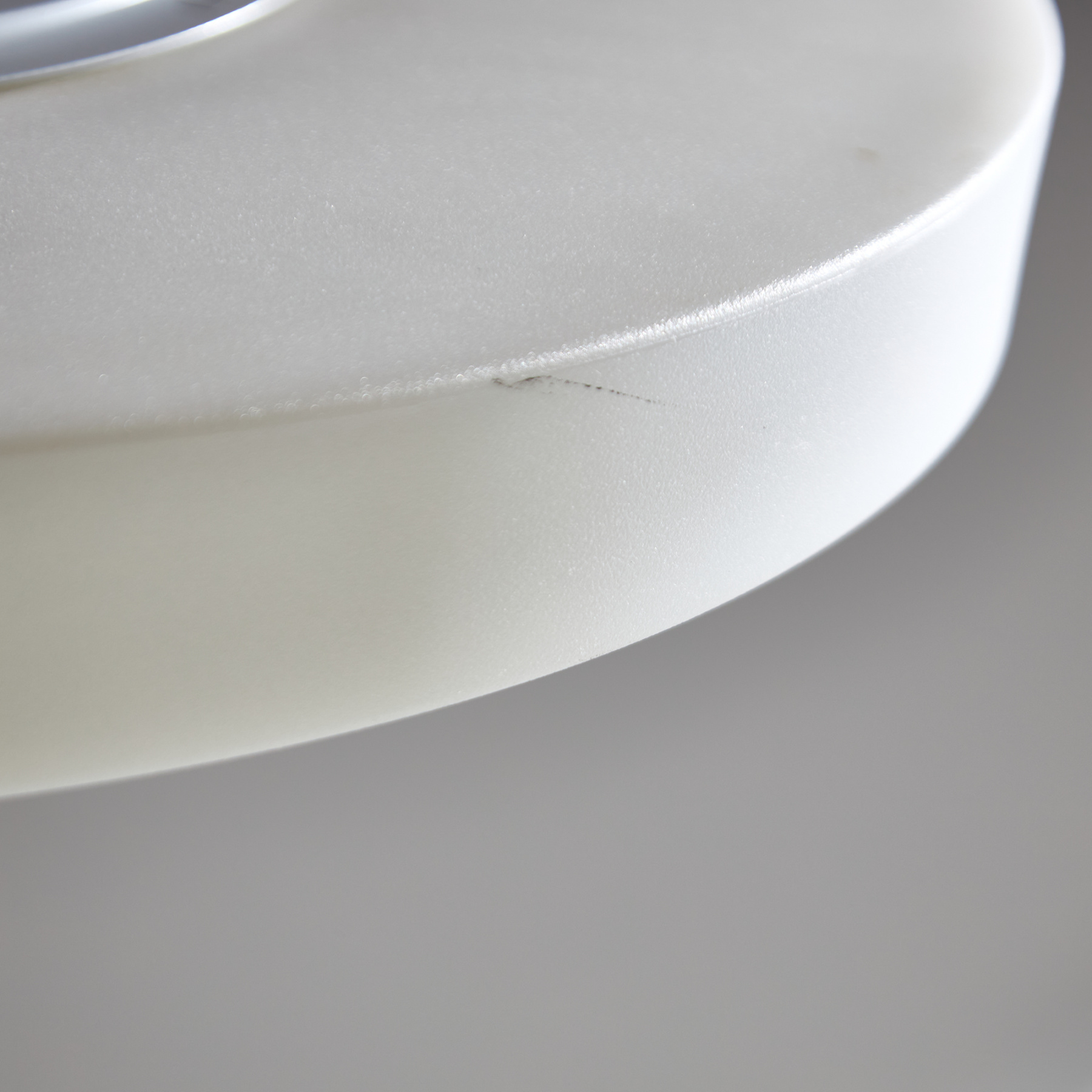 Luc Ramael által a Prandina számára tervezett ‘Equilibre F3’ állólámpa a 2000-es évekből. A lámpa műanyag és alumínium felületén helyenként karcokkal, foltokkal és kopásokkal.