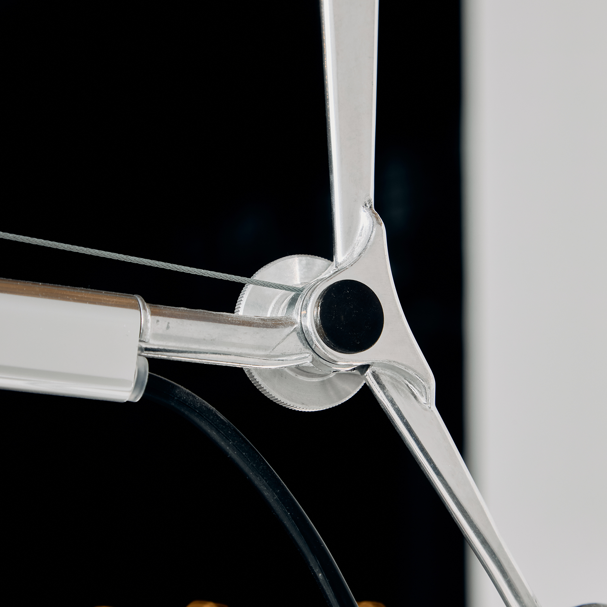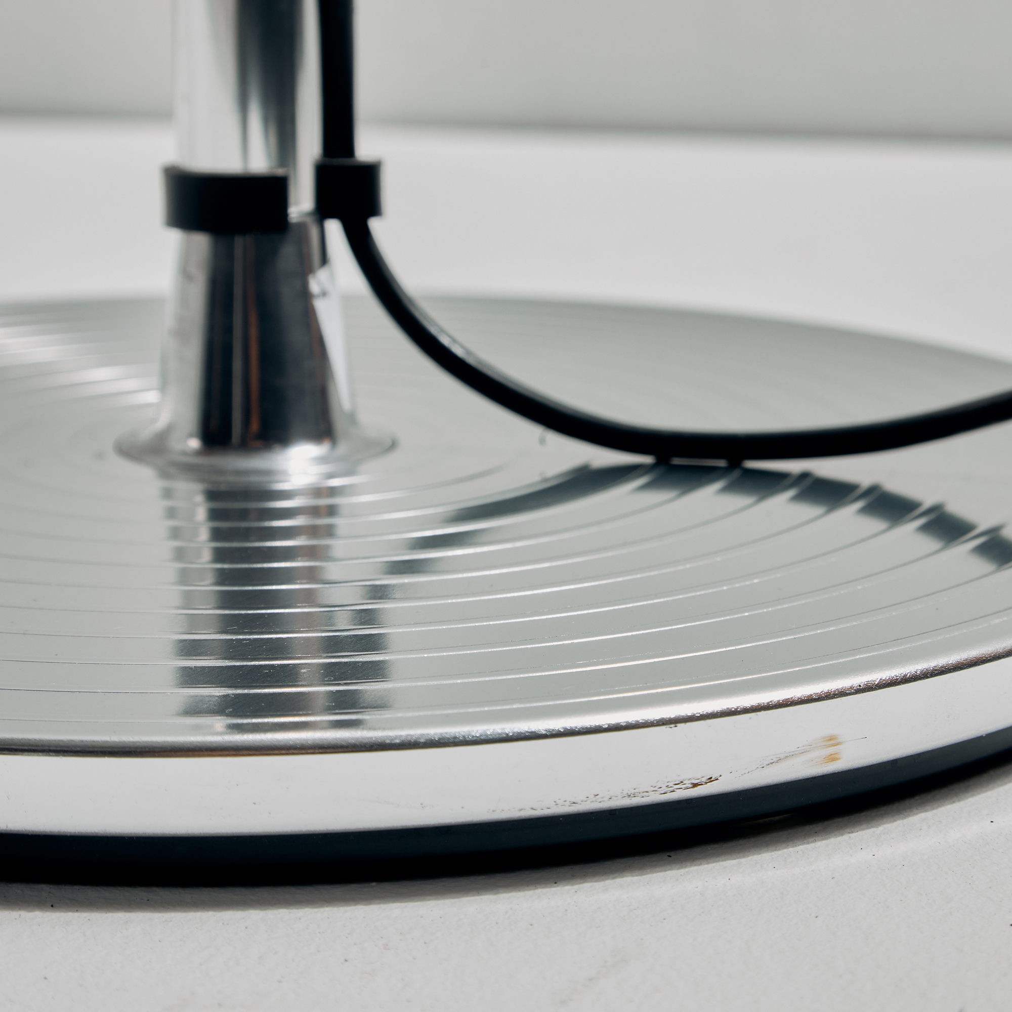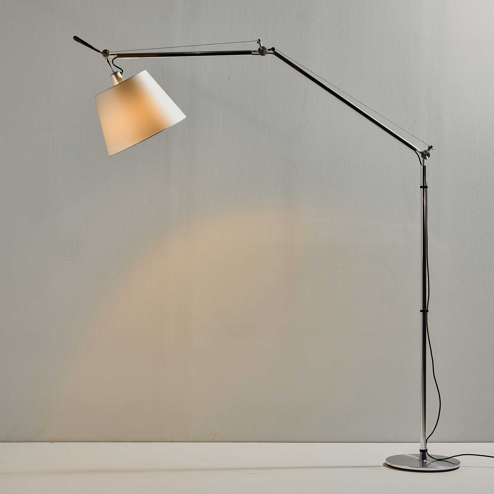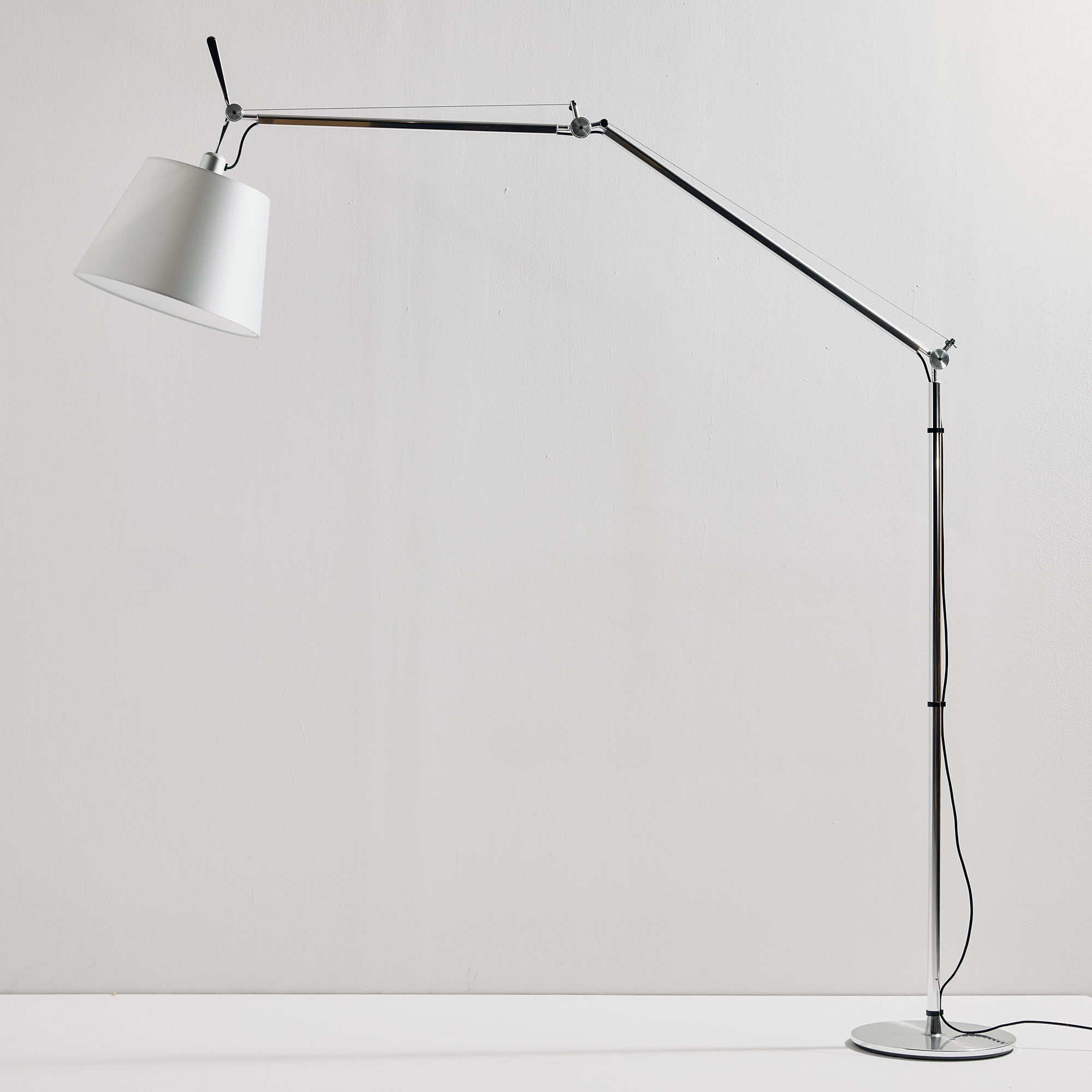 Michele De Lucchi és Giancarlo Fassina által az Artemide számára tervezett ‘Tolomeo Mega’ állólámpa. A búra dőlésszöge és magassága állítható, így a környezet megvilágítására és hangulatvilágításnak is tökéletes. Az állólámpa alumíniumból készült szára több pontban állítható. Felületén helyenként karcokkal, foltokkal és kopásokkal.