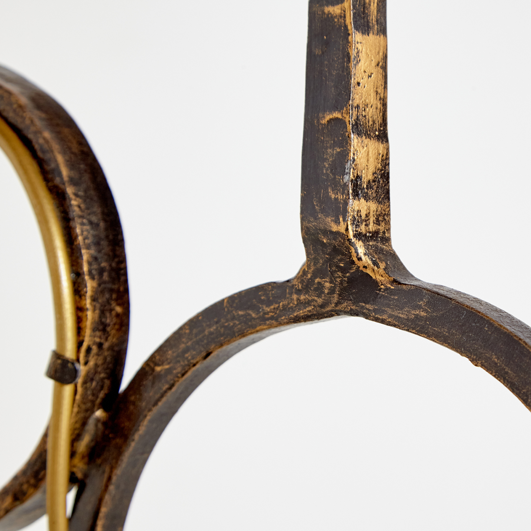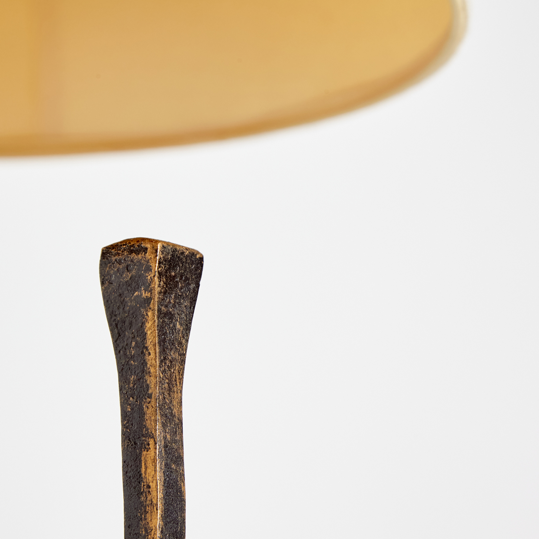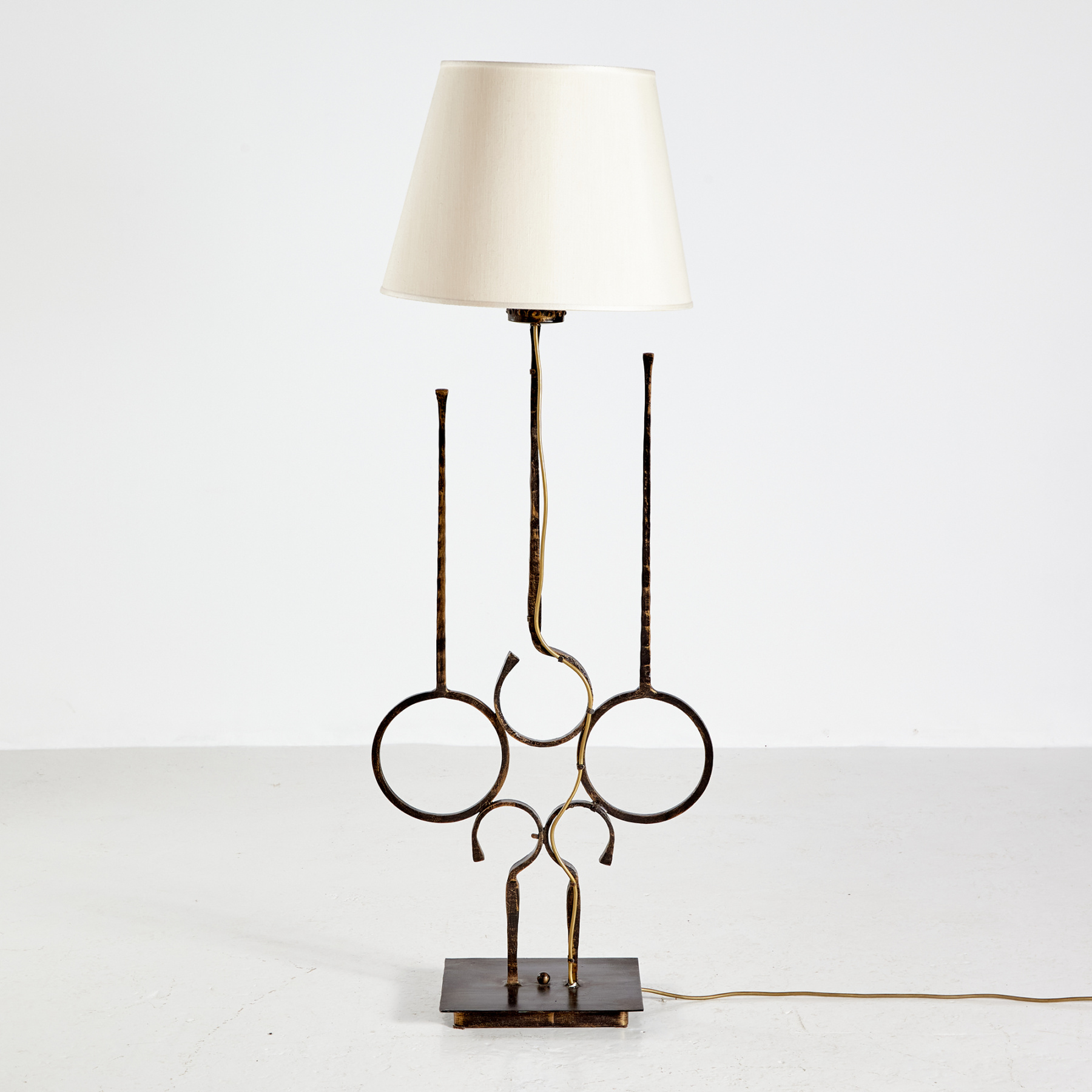 Olasz kovácsoltvas állólámpa vajszínű textil búrával az 1960-as évekből, szép állapotban