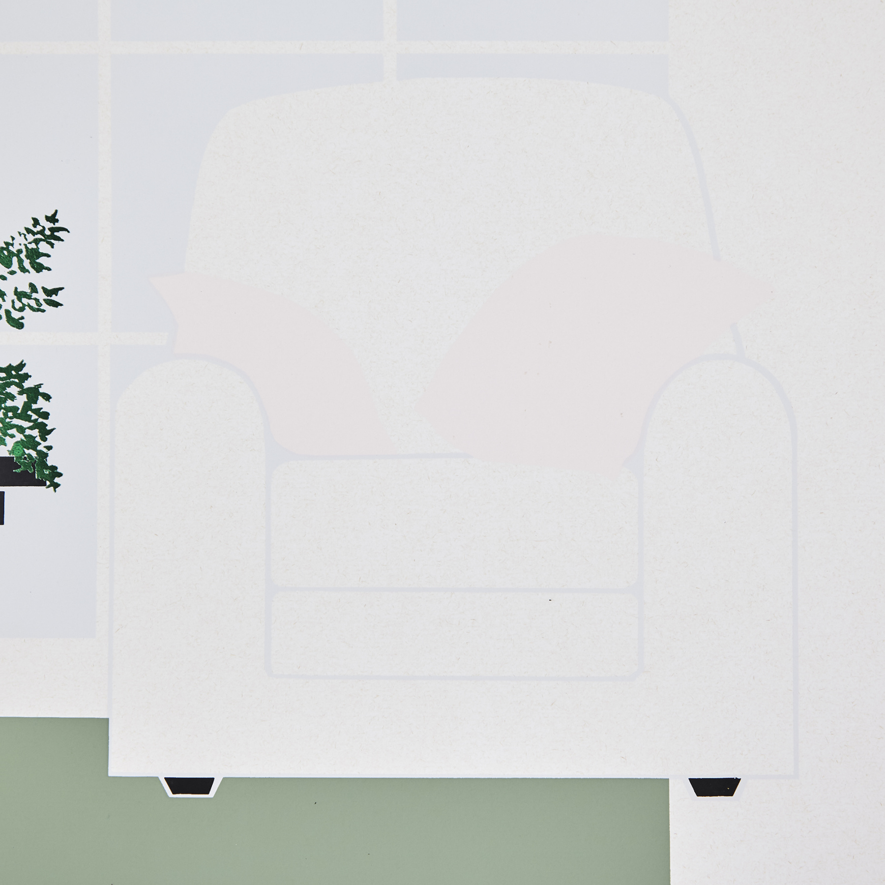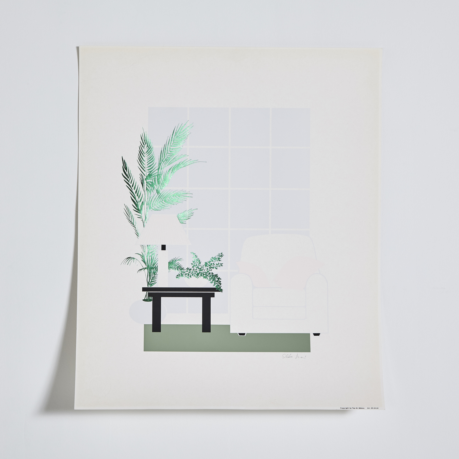 Jelzéssel ellátott hangulatos enteriőrt ábrázoló nyomat Olaszországból, tökéletes állapotban