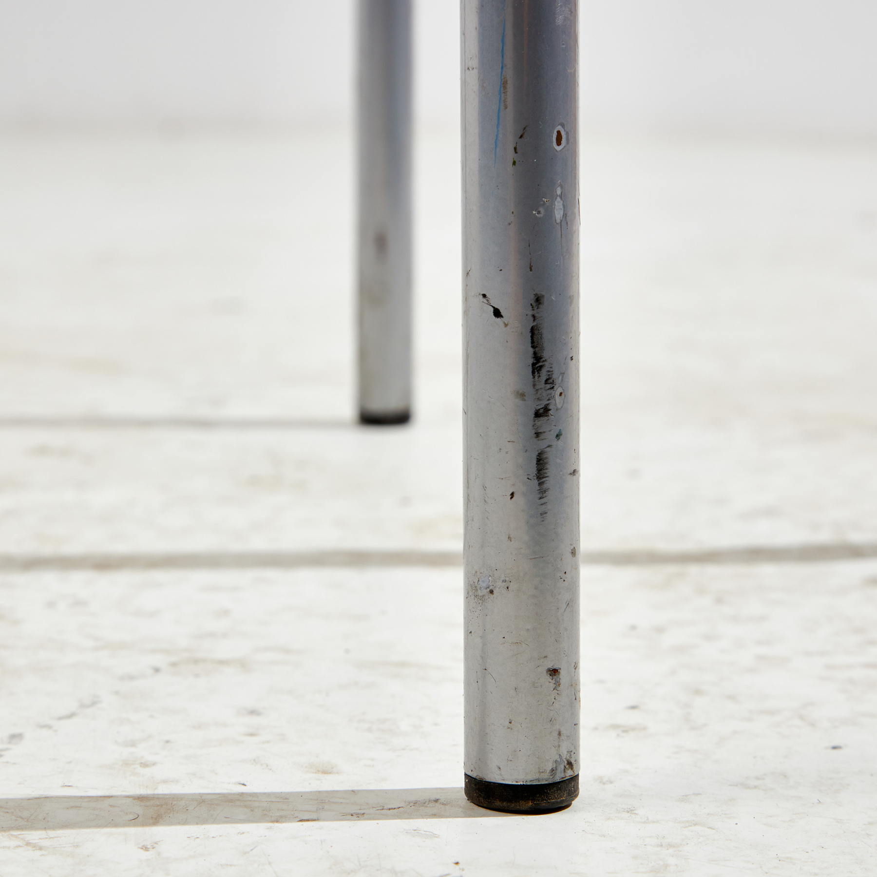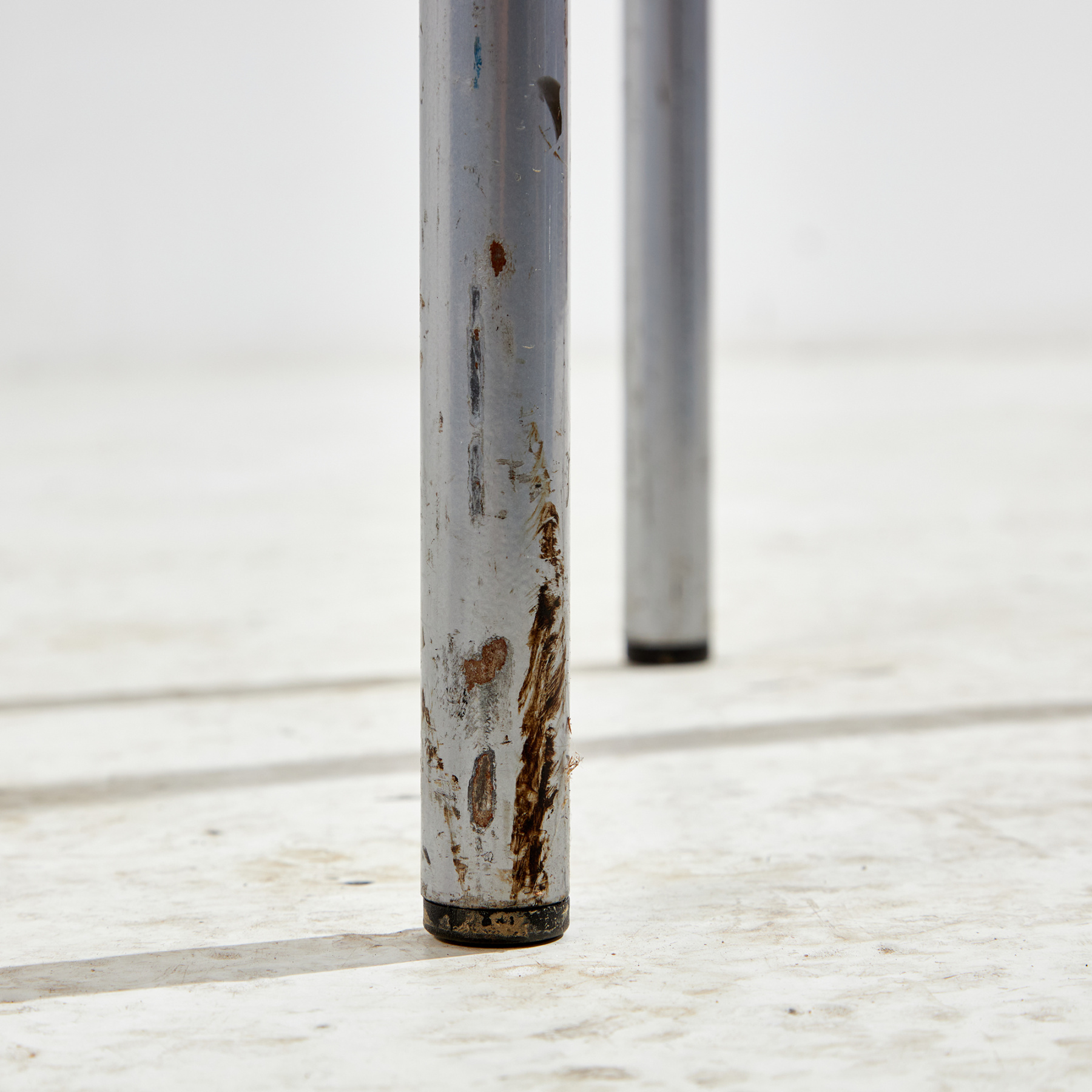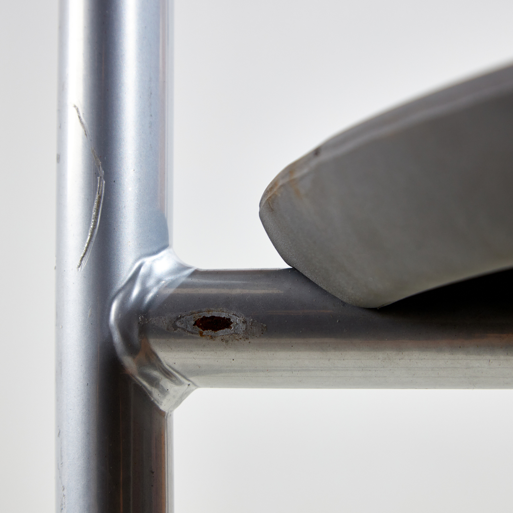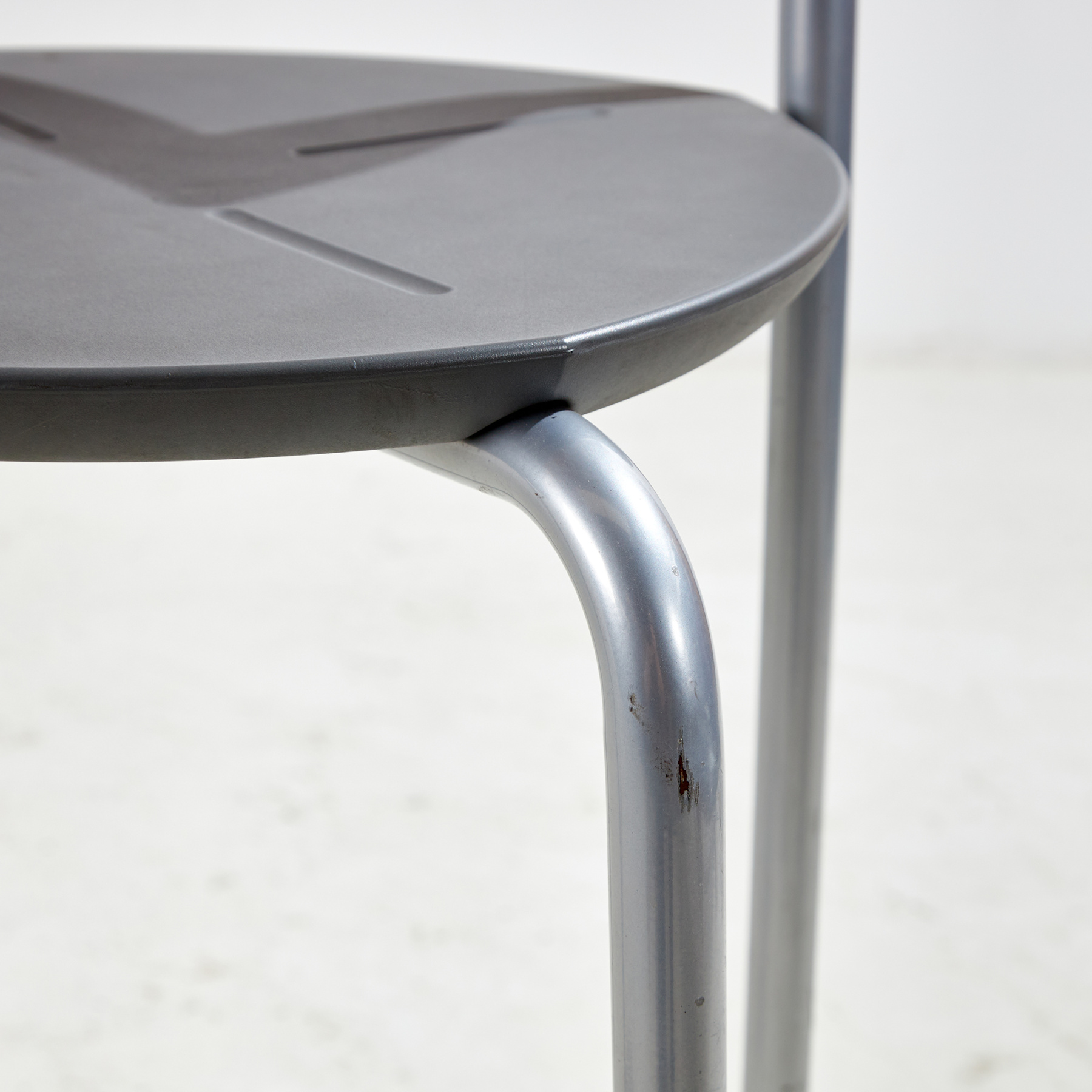 Niels Gammelgaard és Lars Mathiesen, azaz a Pelikan Design által tervezett ‘Opus’ bárszék az 1990-es évekből. Az ülőbútor ülő- és háttámla része gumiból, szerkezete acélból készült. A bárszék felületén helyenként karcokkal, foltokkal és kopásokkal.
