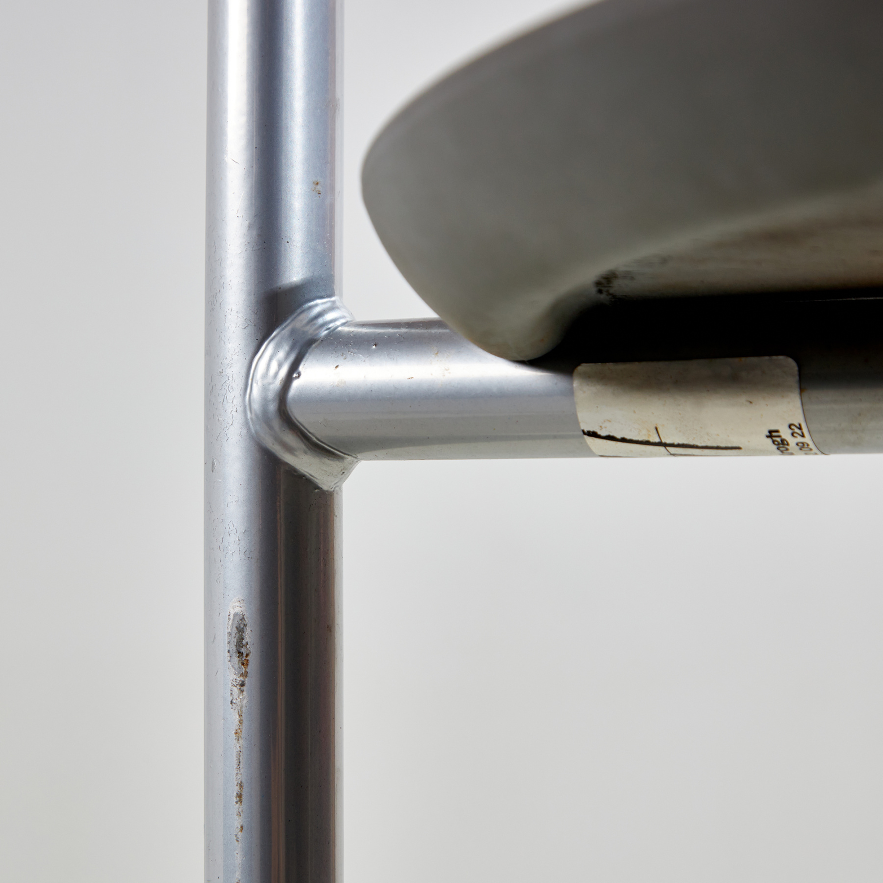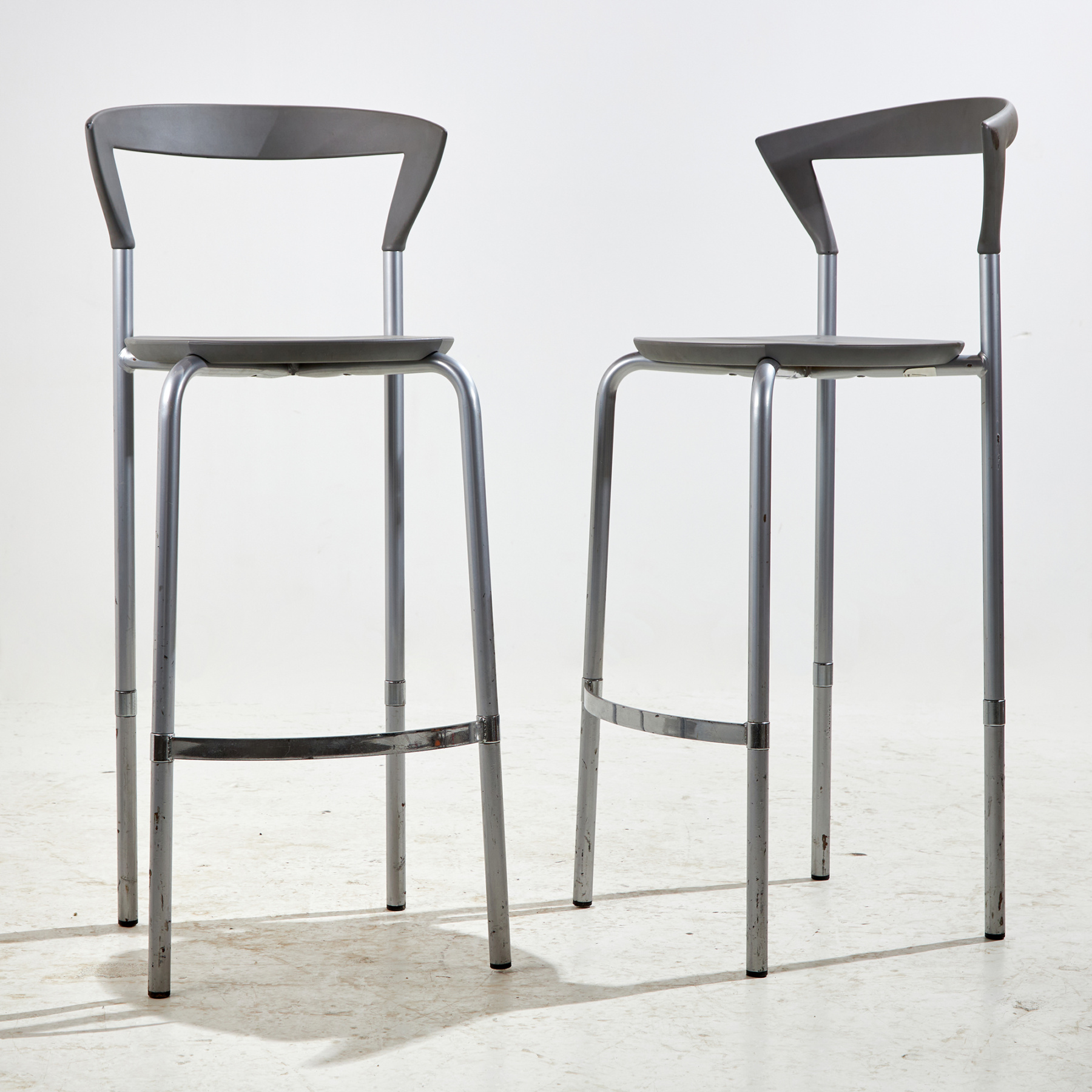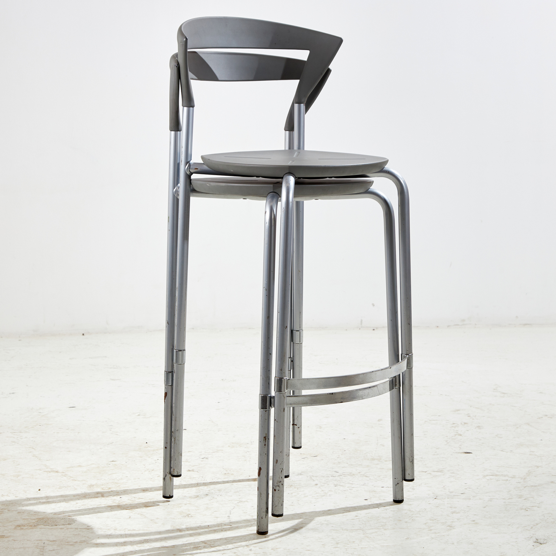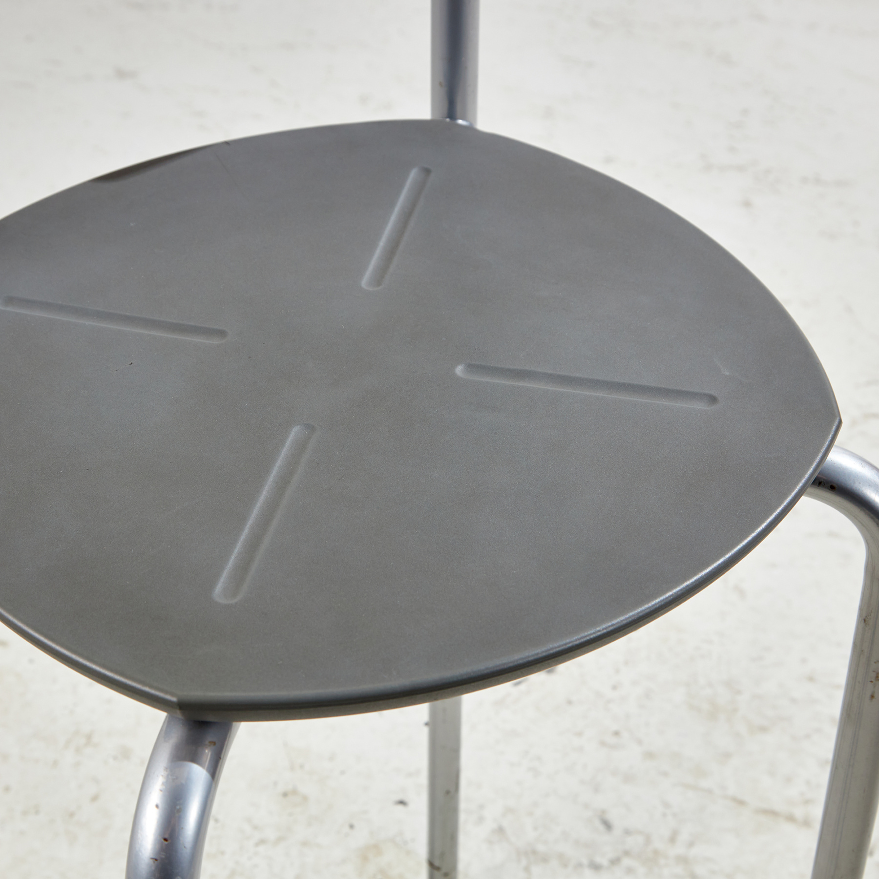 Niels Gammelgaard és Lars Mathiesen, azaz a Pelikan Design által tervezett ‘Opus’ bárszék az 1990-es évekből. Az ülőbútor ülő- és háttámla része gumiból, szerkezete acélból készült. A bárszék felületén helyenként karcokkal, foltokkal és kopásokkal.