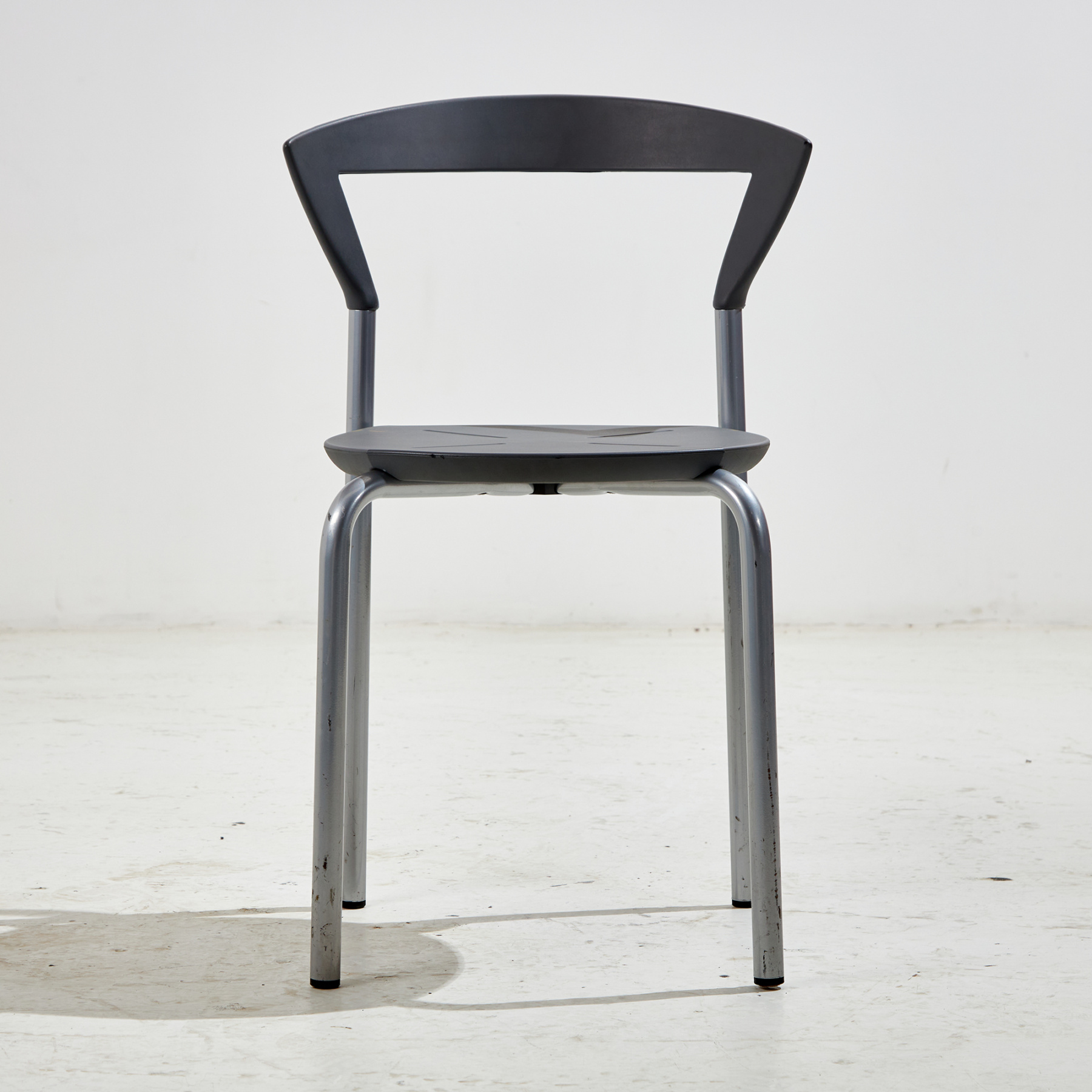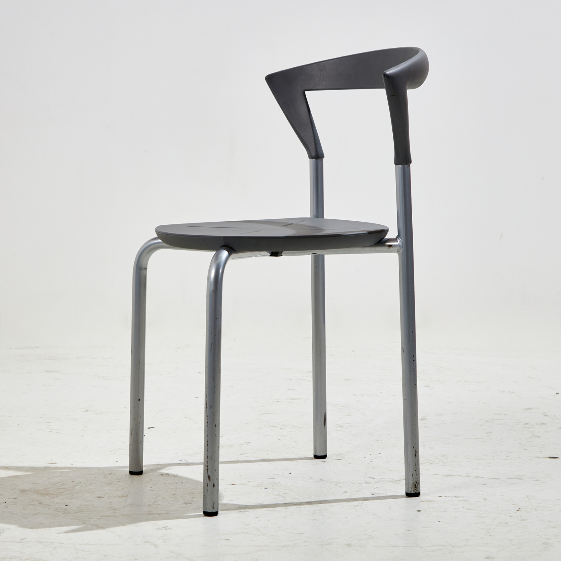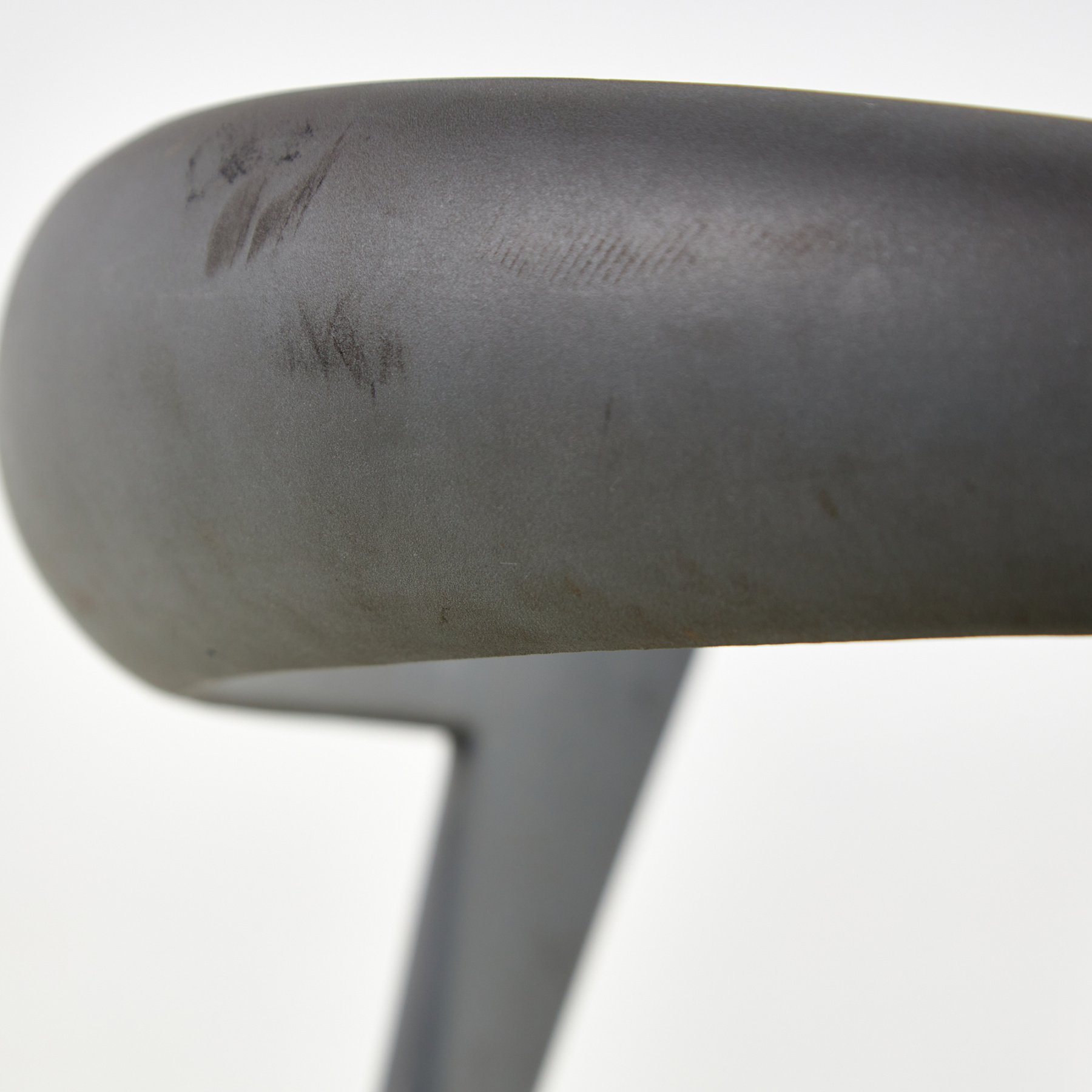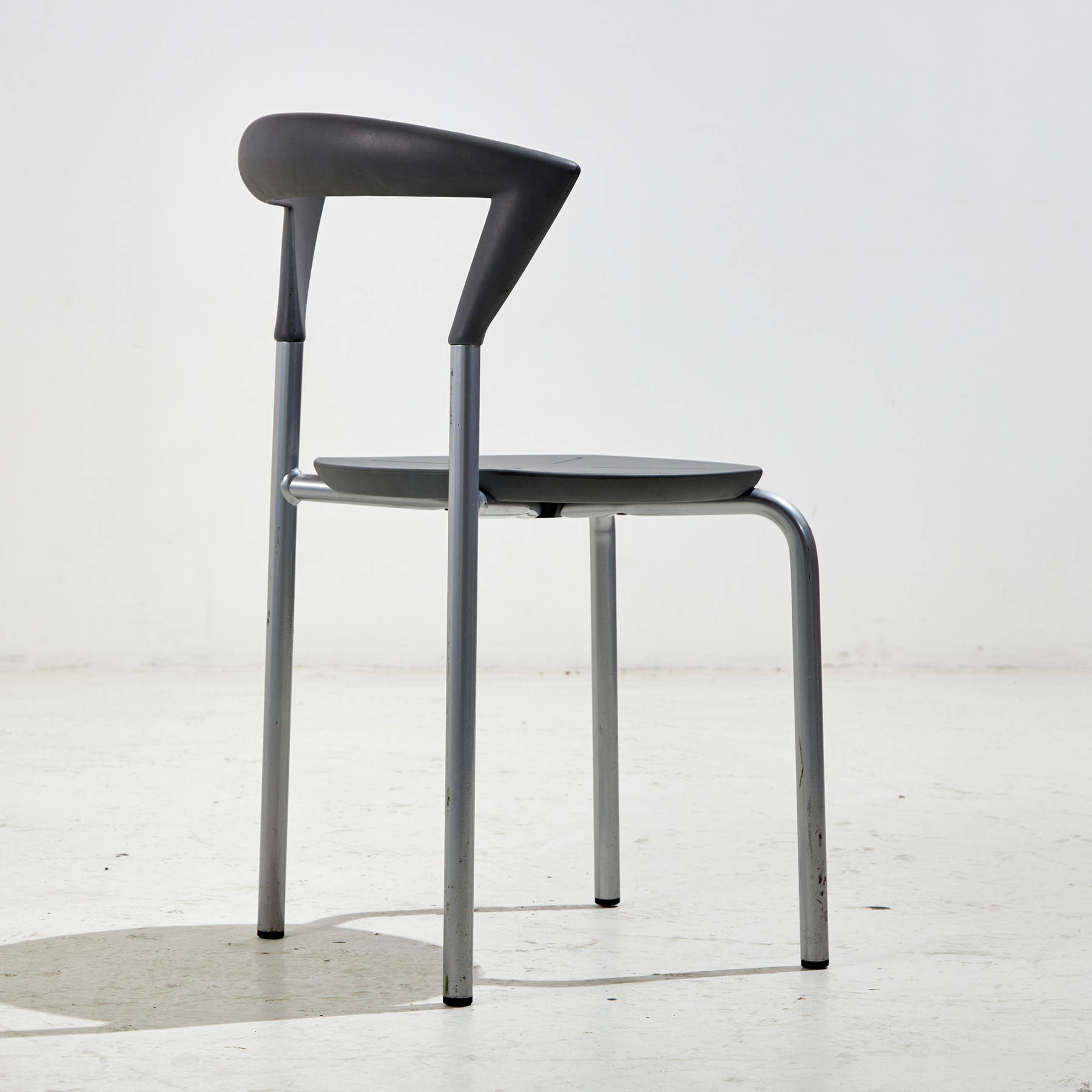 Niels Gammelgaard és Lars Mathiesen, azaz a Pelikan Design által tervezett ‘Opus’ szék az 1990-es évekből. Az ülőbútor ülő- és háttámla része gumiból, szerkezete acélból készült. A szék felületén helyenként karcokkal, foltokkal és kopásokkal.