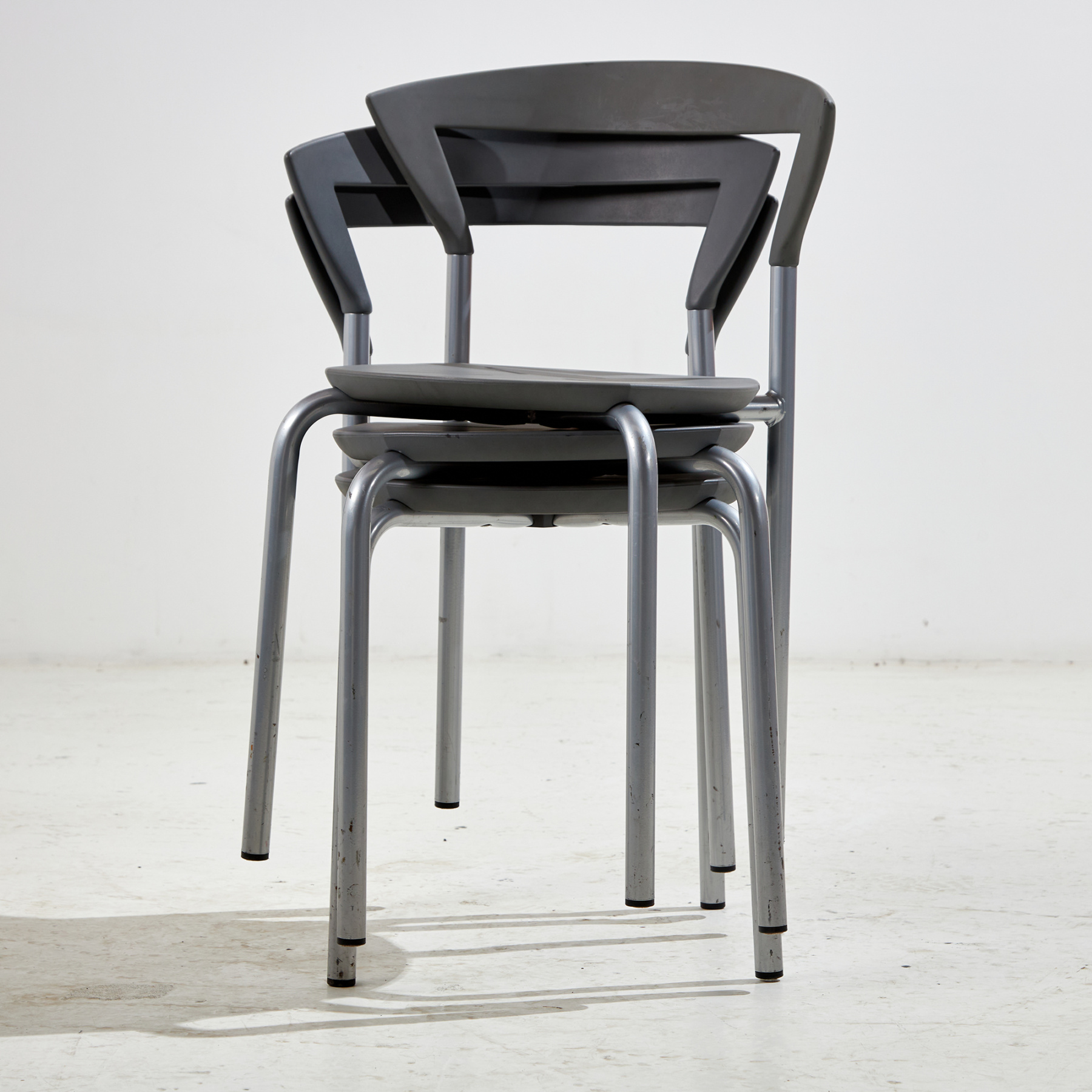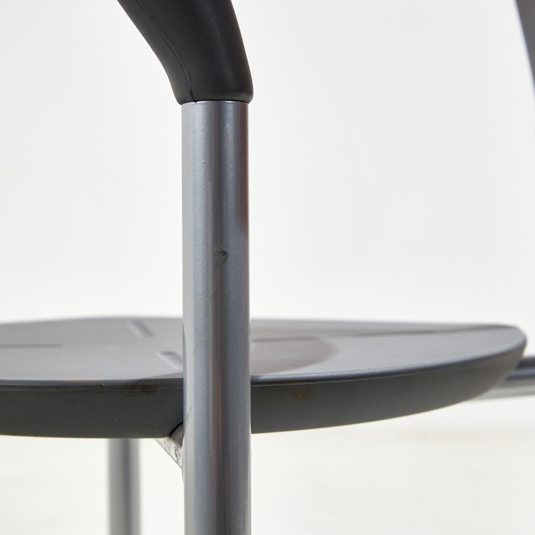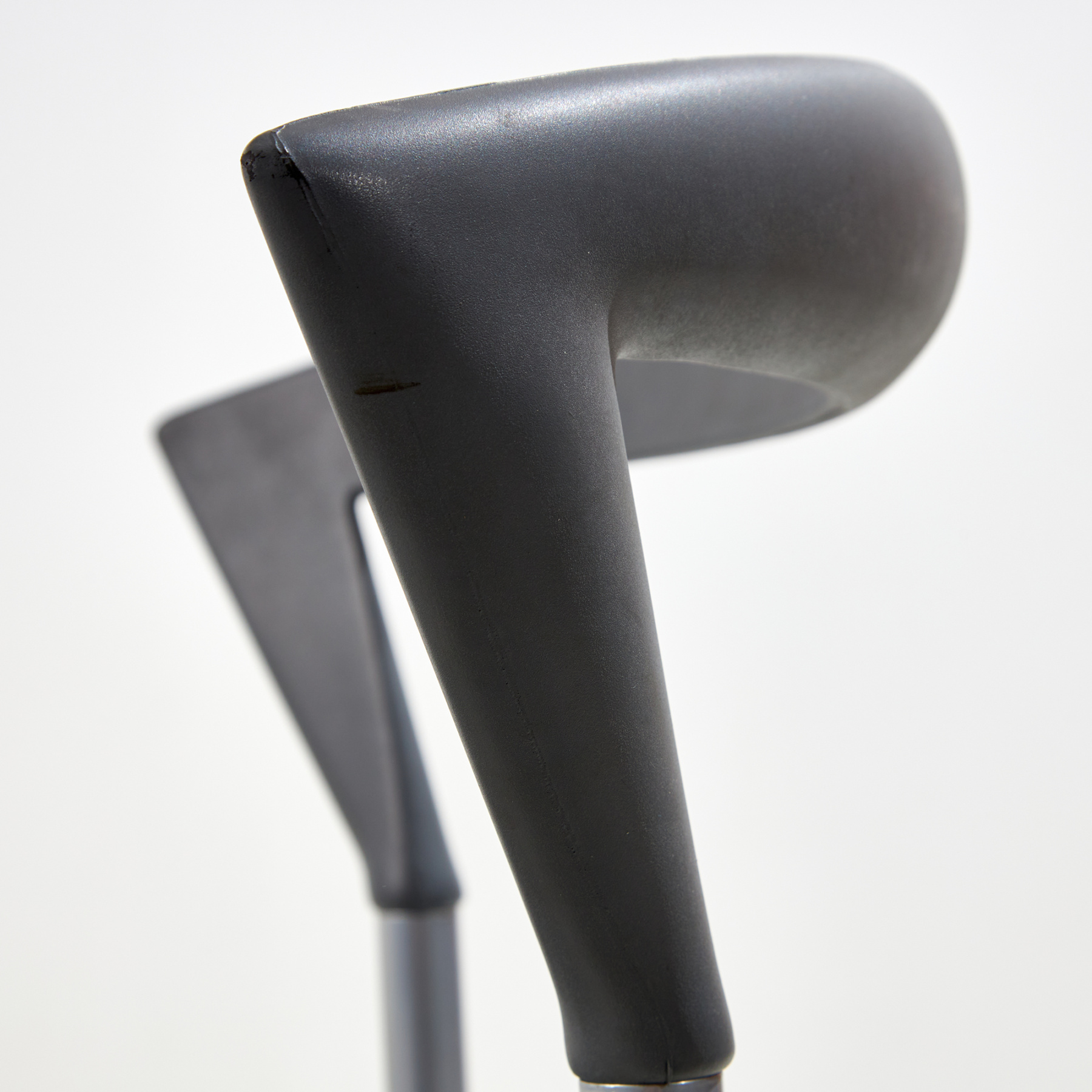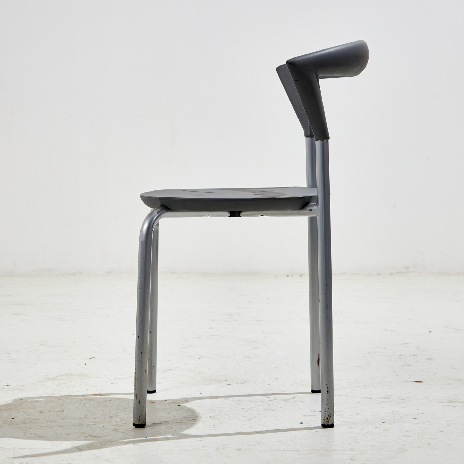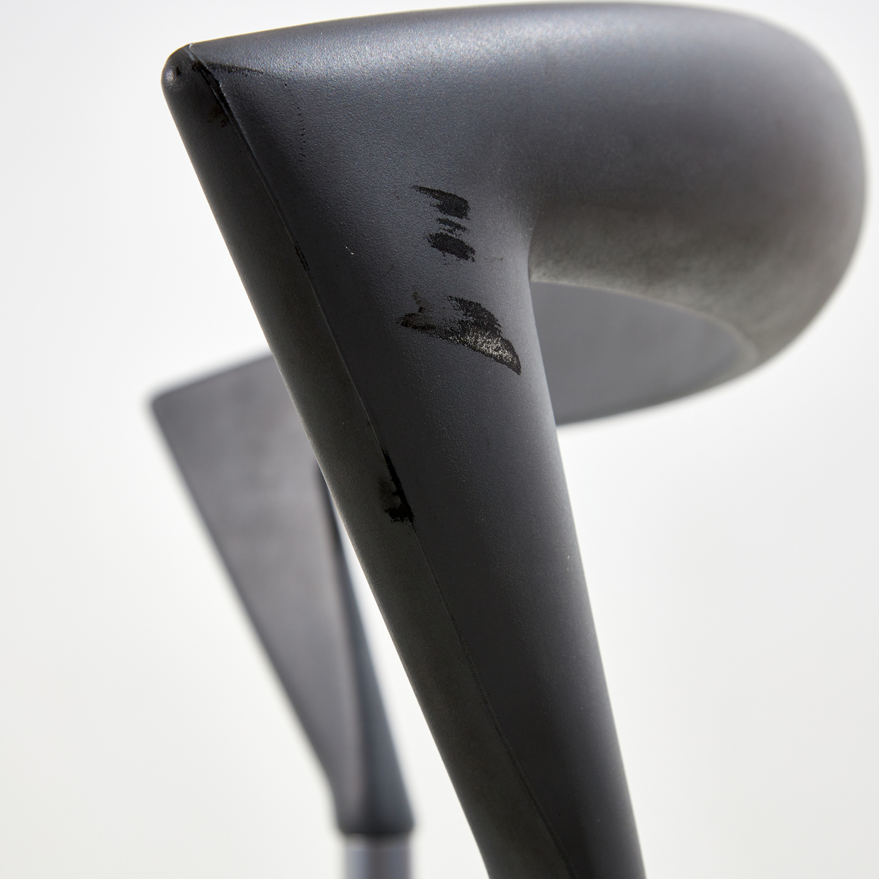 Niels Gammelgaard és Lars Mathiesen, azaz a Pelikan Design által tervezett ‘Opus’ szék az 1990-es évekből. Az ülőbútor ülő- és háttámla része gumiból, szerkezete acélból készült. A szék felületén helyenként karcokkal, foltokkal és kopásokkal.