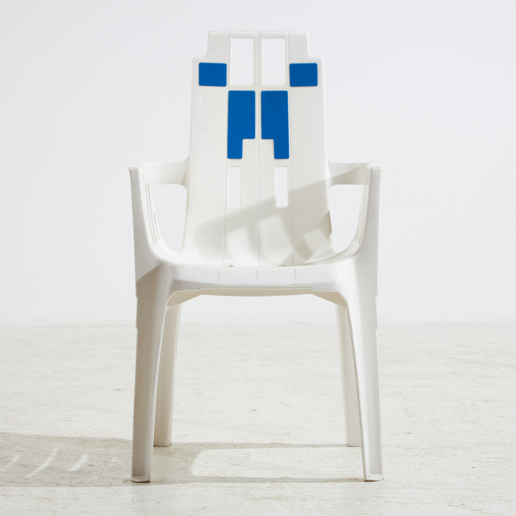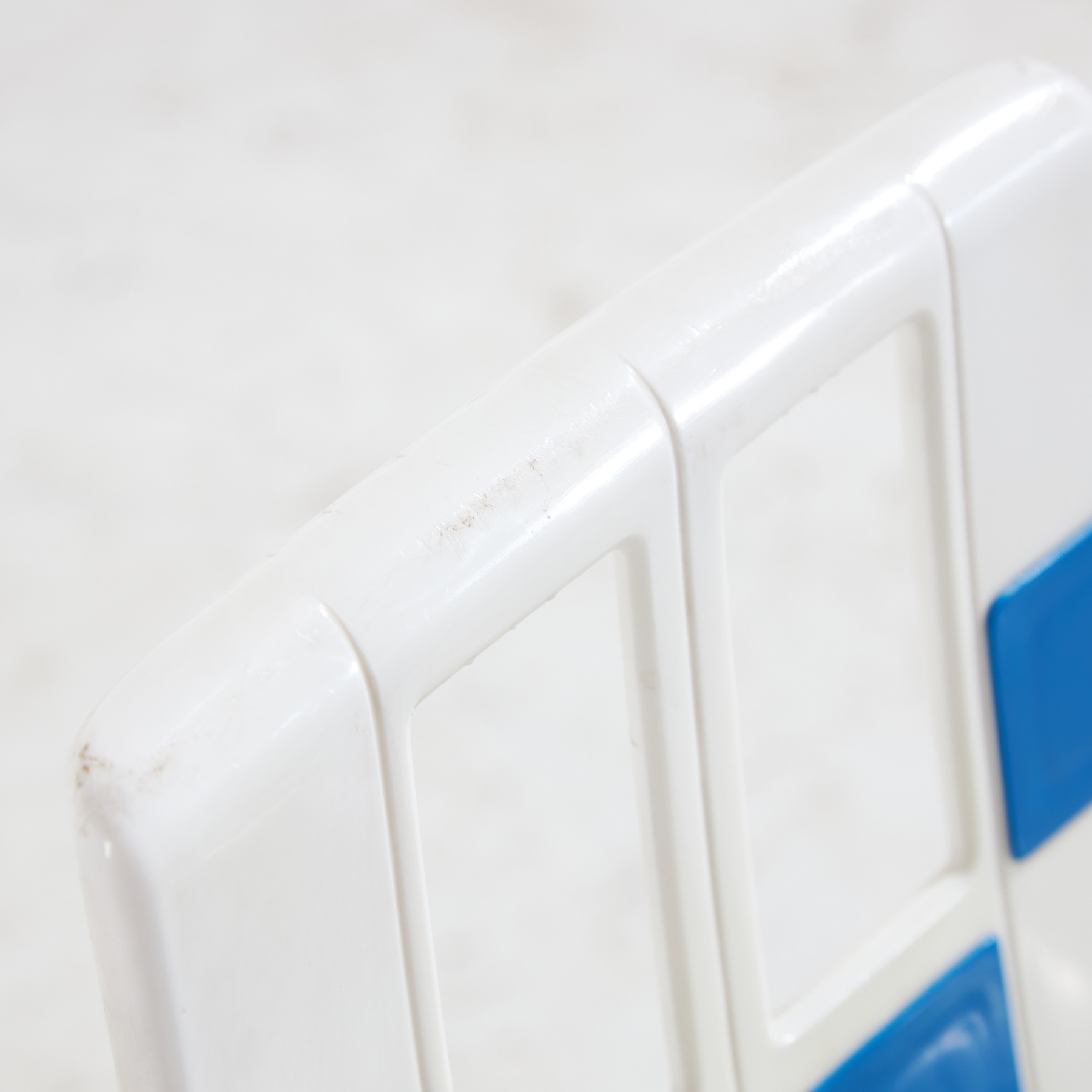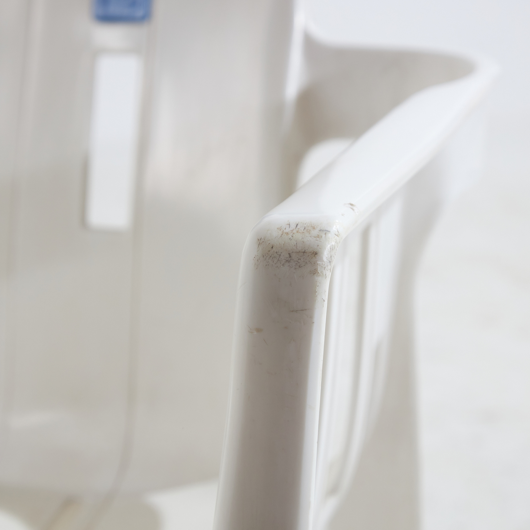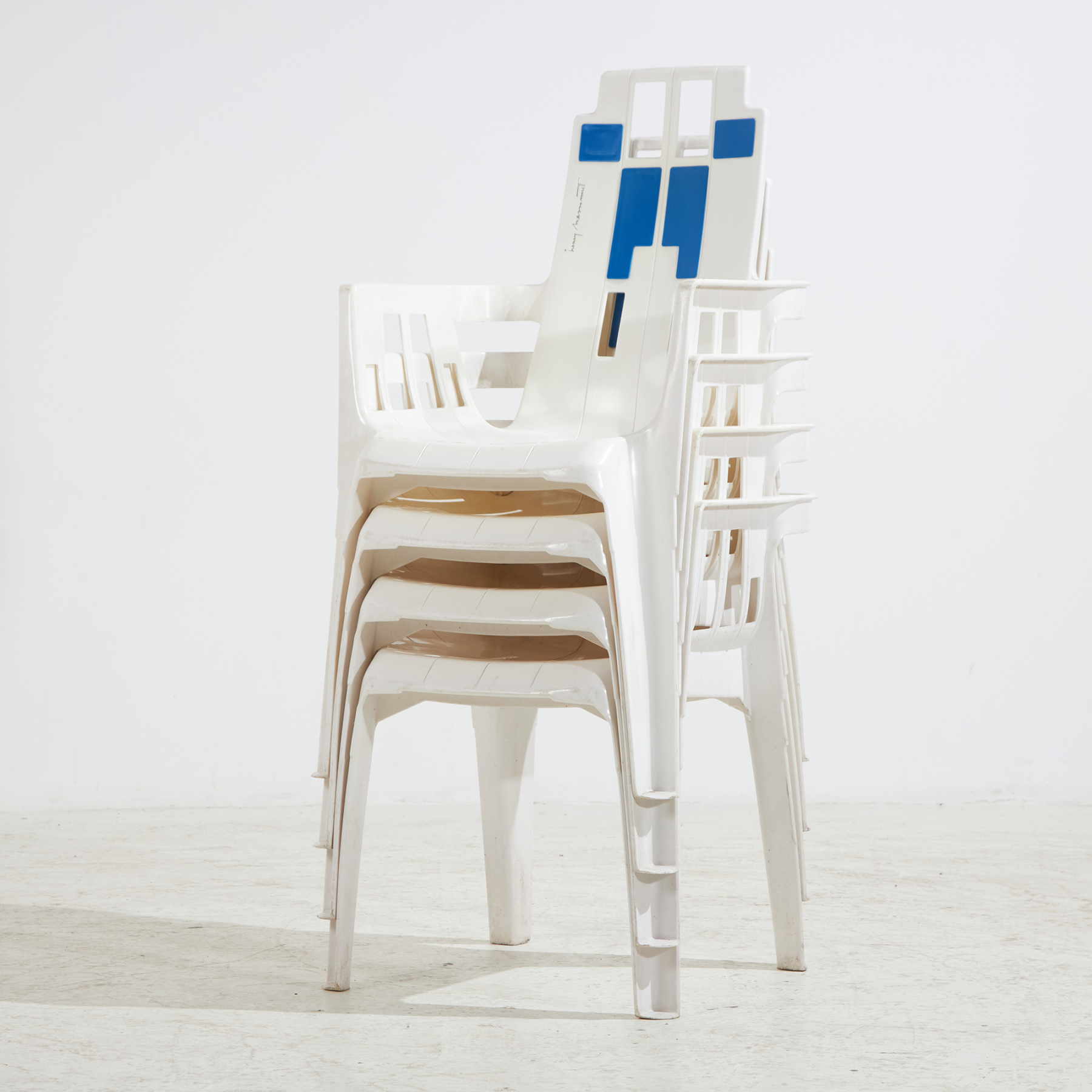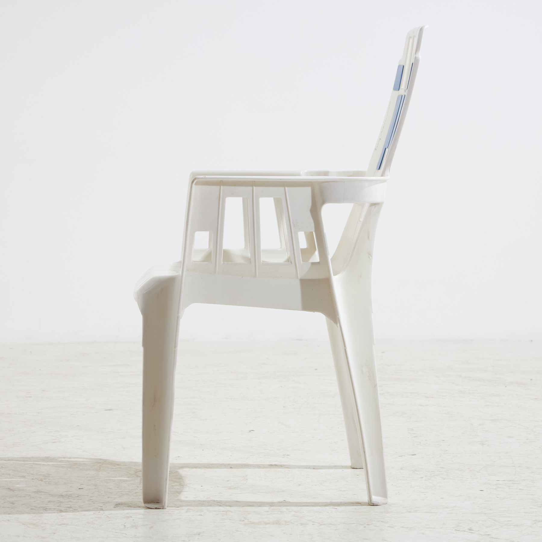 Pierre Paulin által a Henry Massonnet számára tervezett ‘Boston’ karosszék az 1980-as évekből. Az ülőbútor rakásolható, műanyag szerkezetén helyenként felületi karcok, foltok és kopások találhatóak. Kiválóan passzol teraszokra és belső terekbe is egyedi formájának köszönhetően.