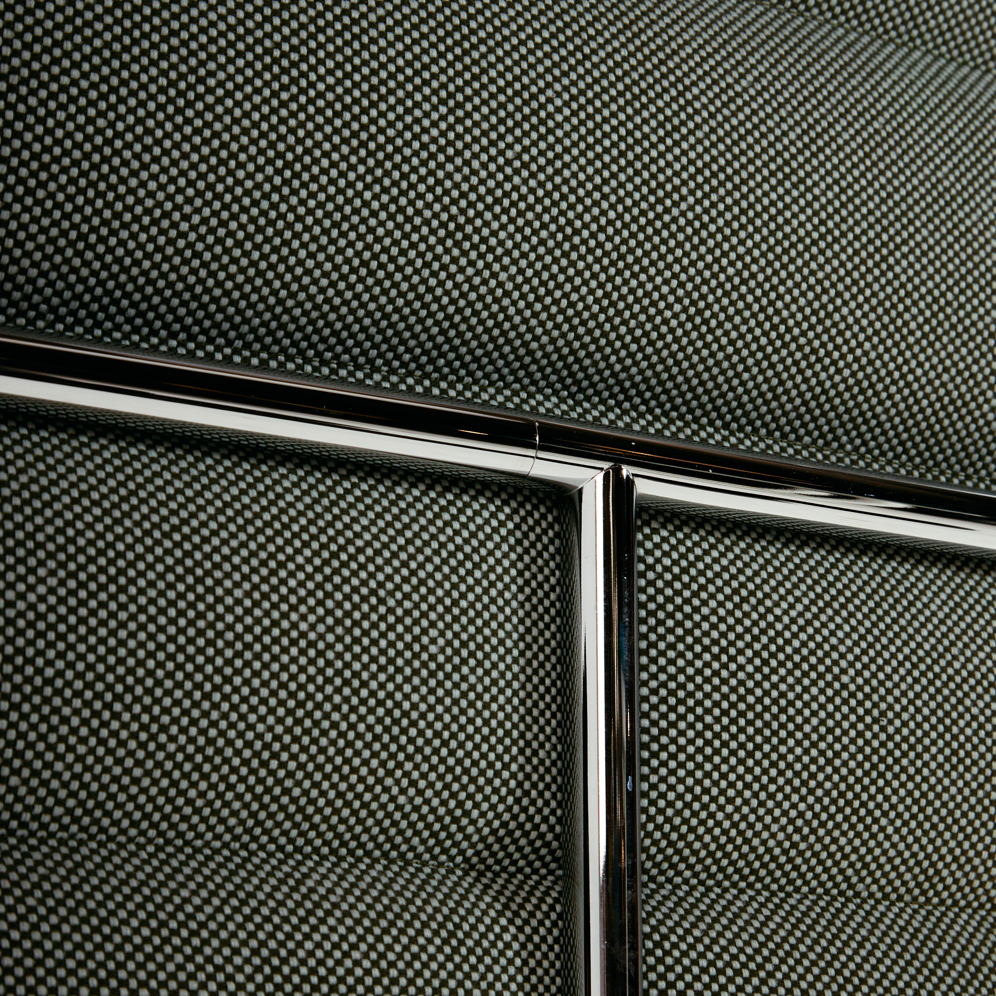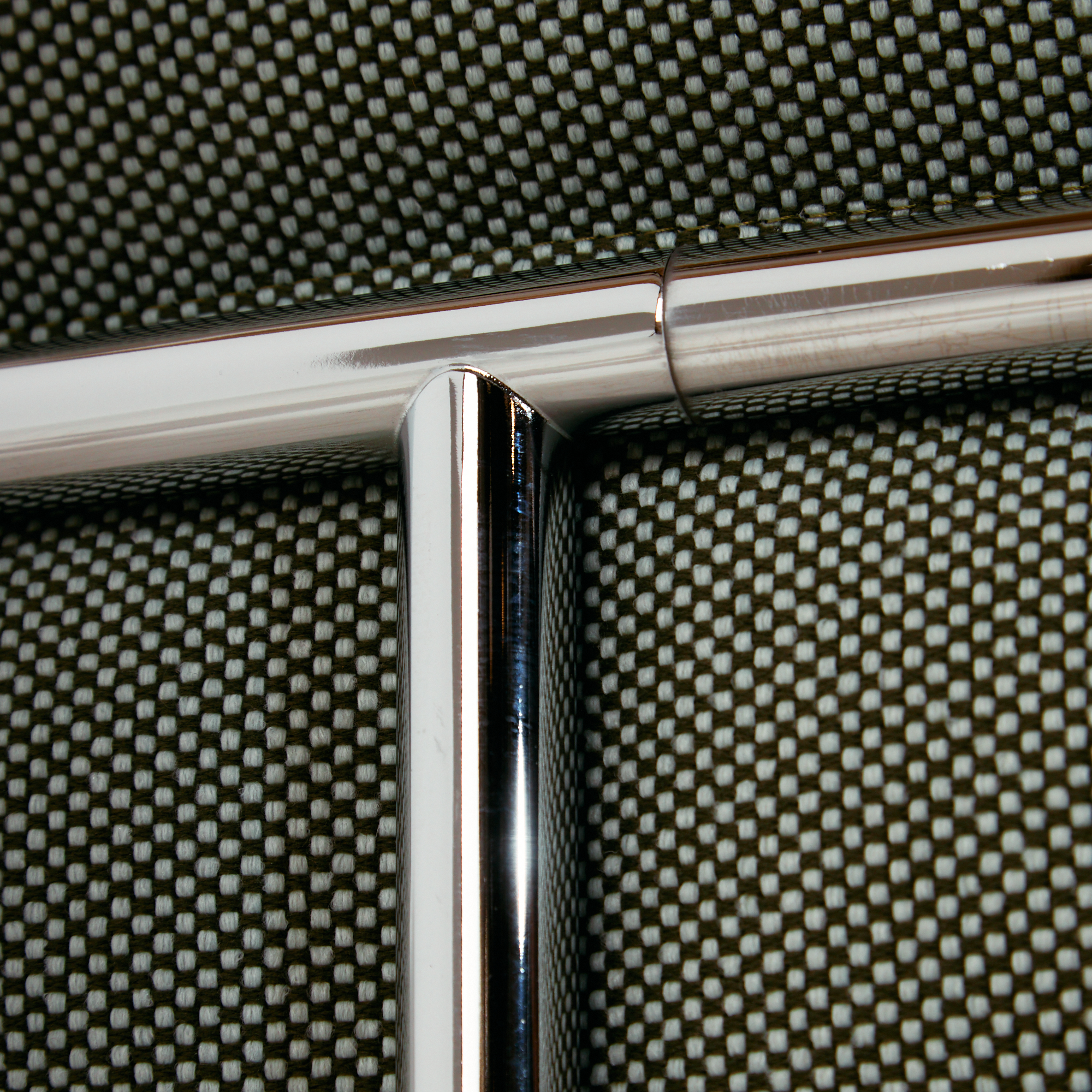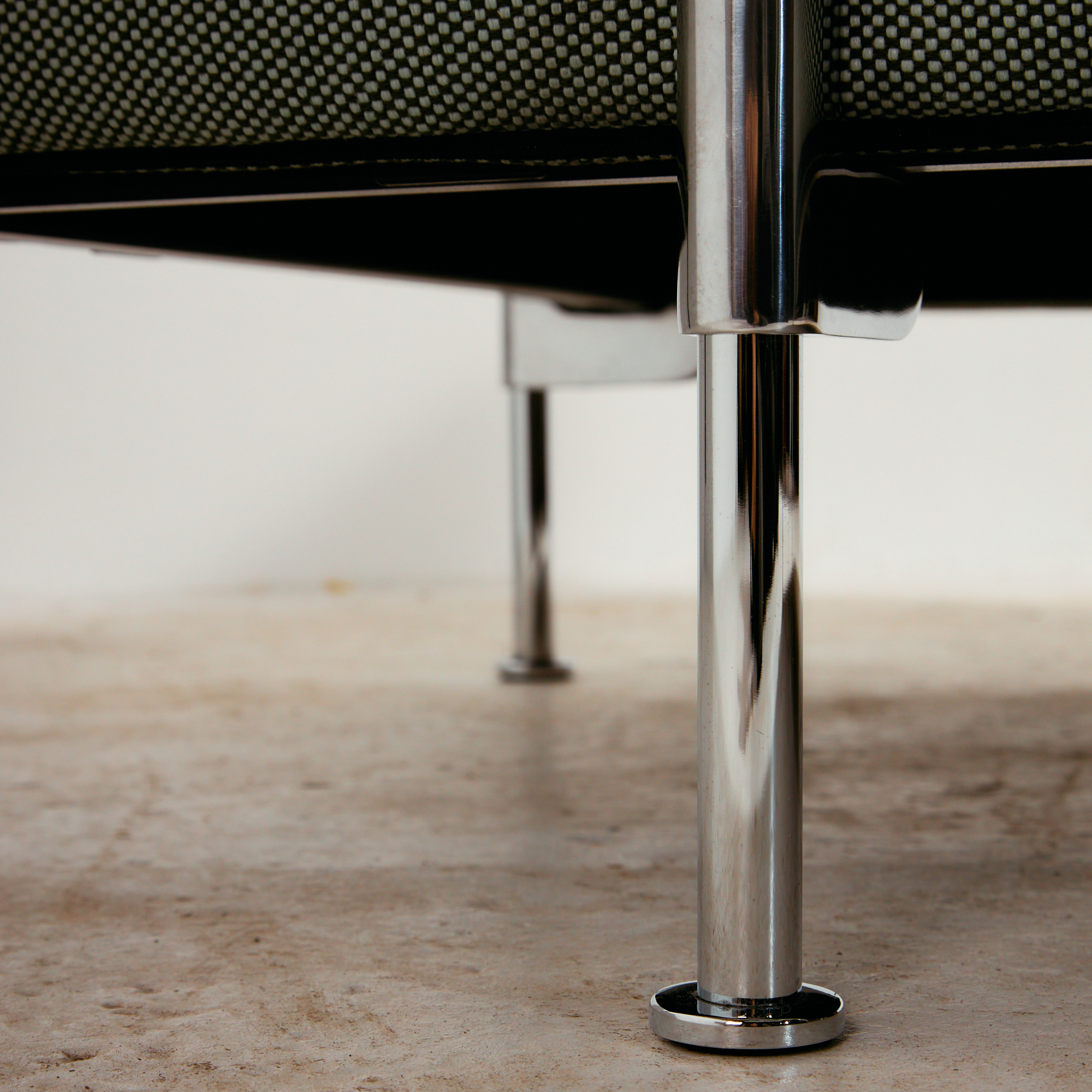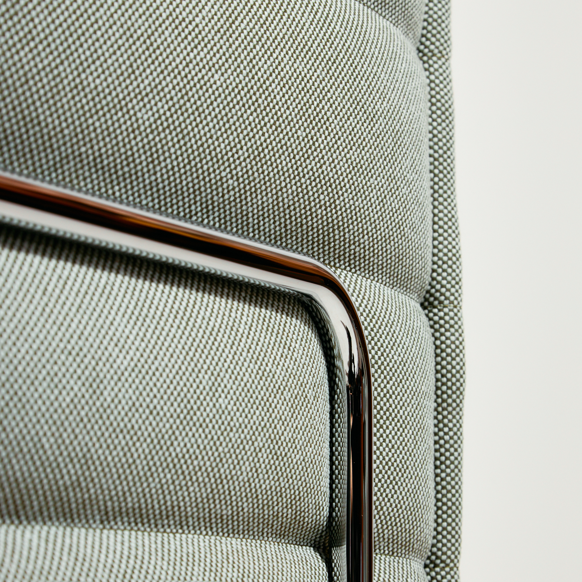 Ronan és Erwan Bouroullec által a Vitra számára tervezett ‘Alcove Highback’ kétszemélyes kanapé a 2000-es évekből. A kanapét elsősorban irodai használatra tervezték, hiszen formai kialakításának köszönhetően egy forgalmas környezetben is képes azonnal privát teret képezni. A kanapé kényelmes textil kárpitozással és króm csővázas acél szerkezettel ellátott. Krómozott szerkezetén helyenként apró felületi karcokkal. A kanapé egyaránt megállja a helyét irodai és otthoni környezetben is.