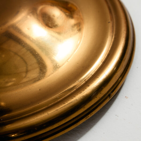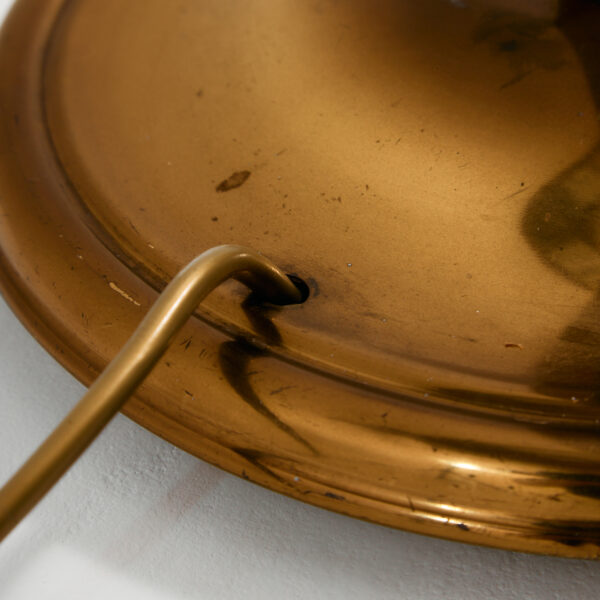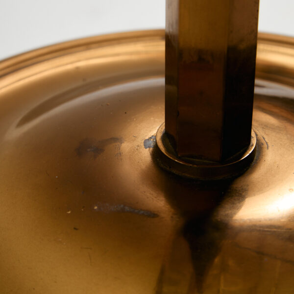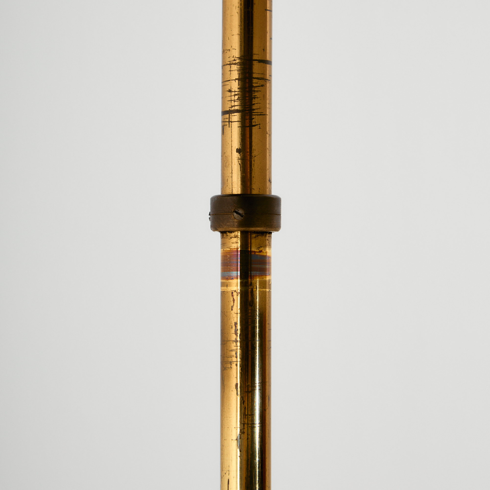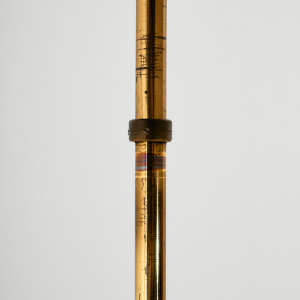 Egy igazán klasszikus és elegáns darab. Izgalmas formákkal ellátott sárgaréz állólámpa az 1970-es évekből. A búra magassága és dőlésszöge állítható, így a környezet megvilágítására és hangulatvilágításnak is tökéletes. A lámpa felületén helyenként karcokkal, foltokkal és kopásokkal. Fém felülete helyenként oxidálódott.