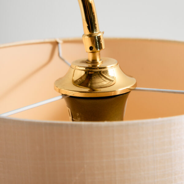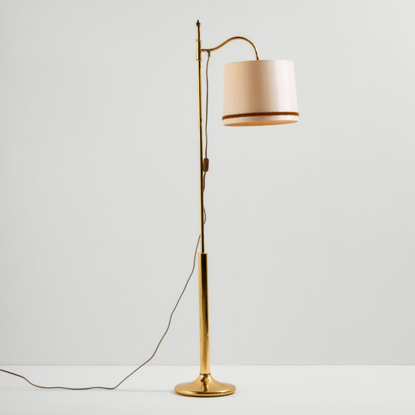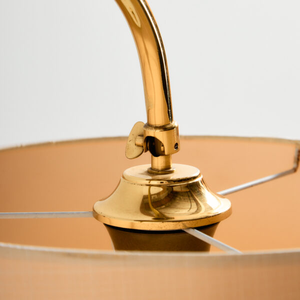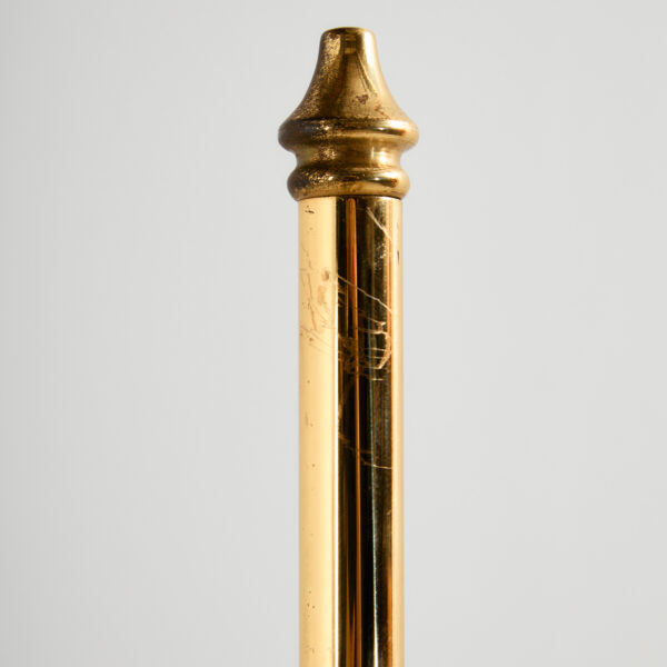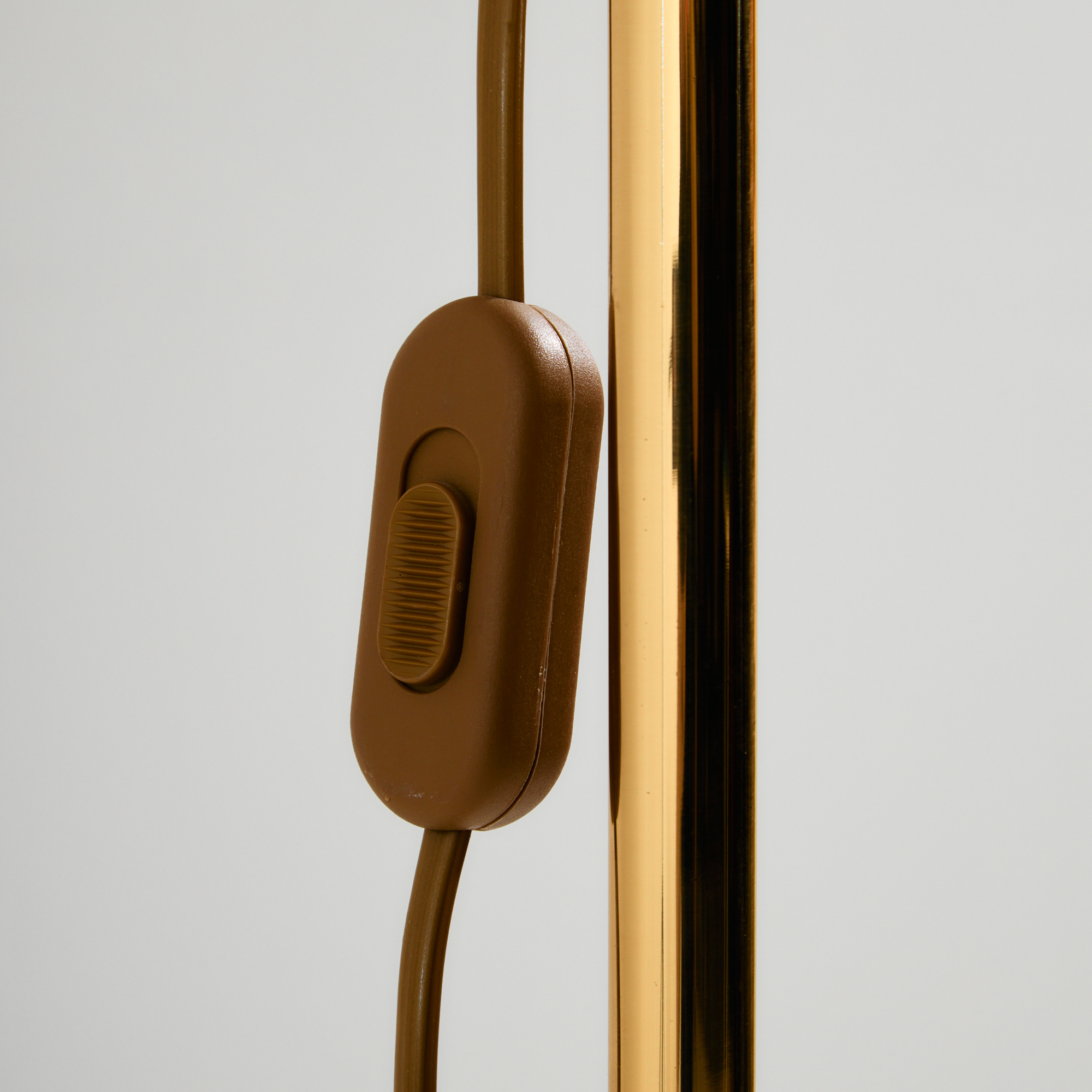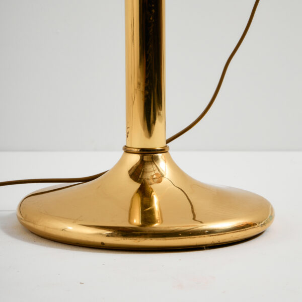 Egy igazán klasszikus és elegáns darab. Kerekded formákkal ellátott sárgaréz állólámpa az 1970-es évekből. A búra magassága és dőlésszöge állítható, így a környezet megvilágítására és hangulatvilágításnak is tökéletes. A lámpa felületén helyenként karcokkal, foltokkal és kopásokkal. Fém felülete helyenként oxidálódott.