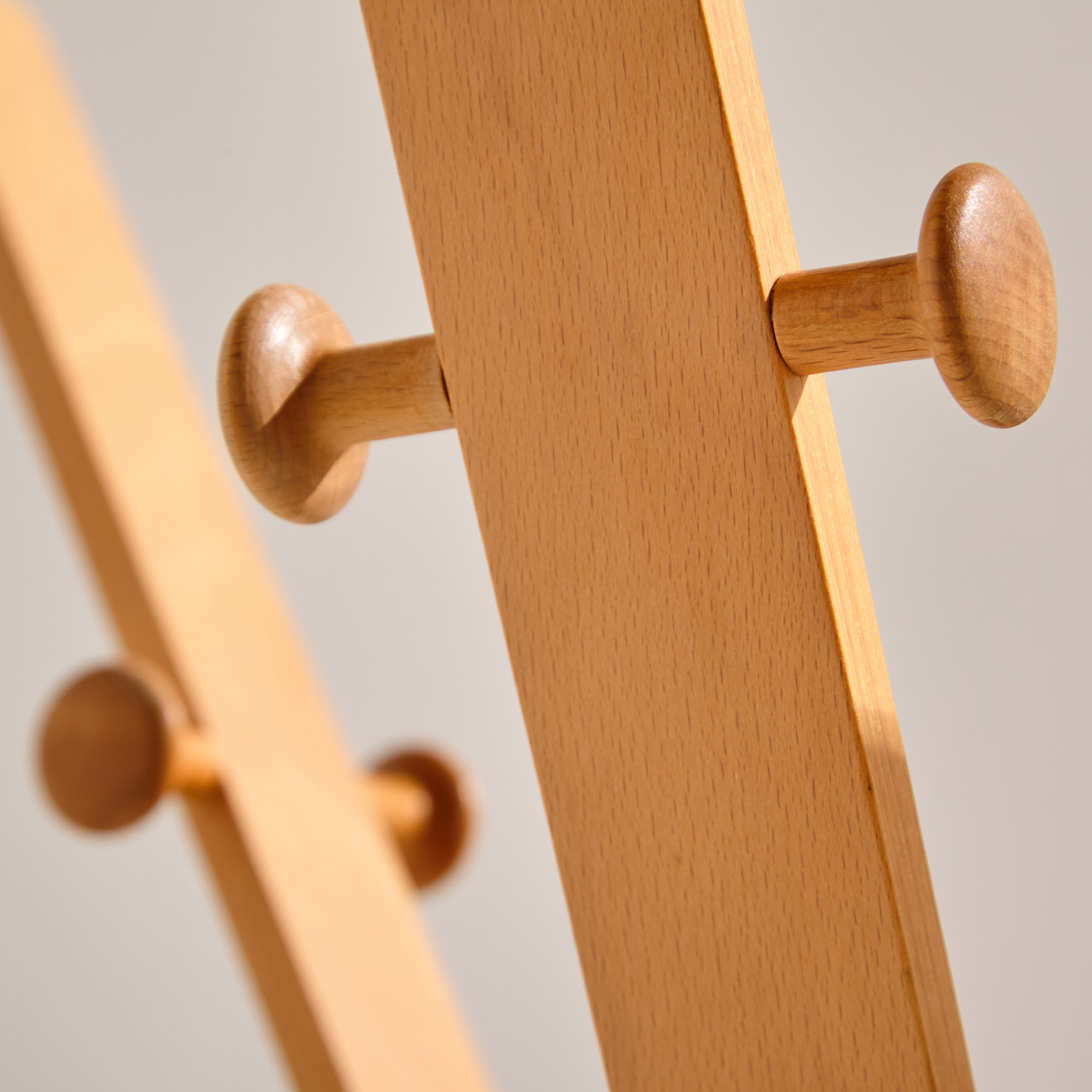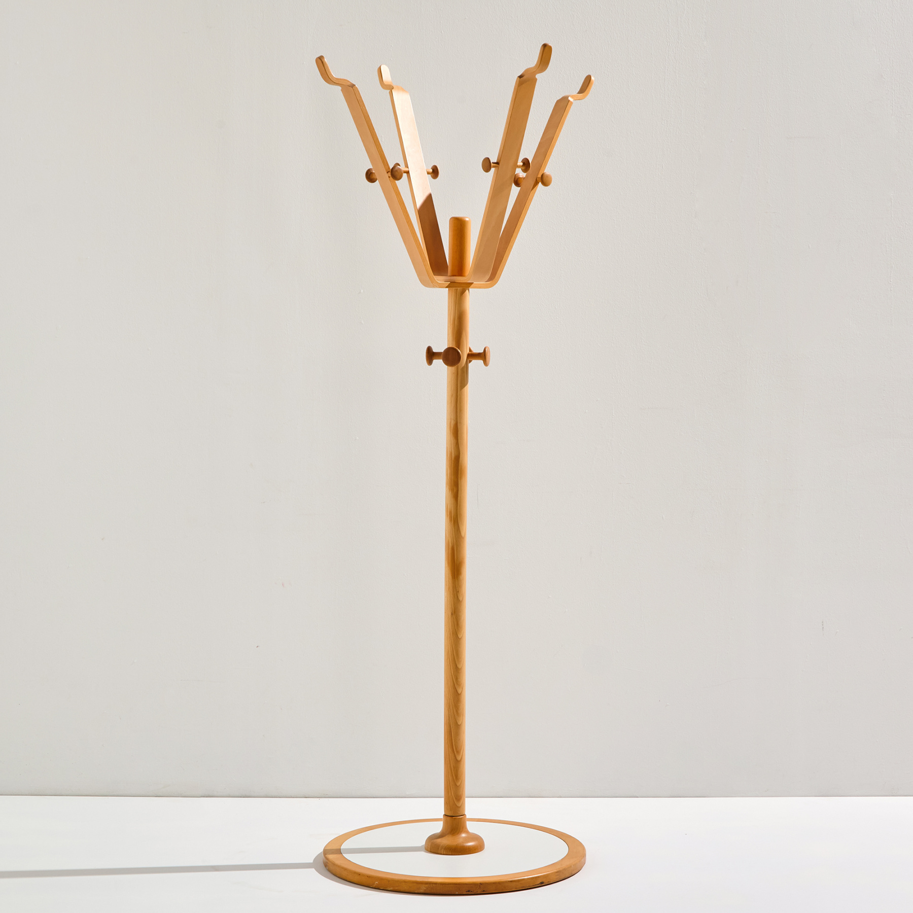 Søren Nissen és Ebbe Gehl által tervezett bükk állófogas az 1960-as évekből. Laminált és bükk felületén karcokkal, kopásokkal és repedésekkel.