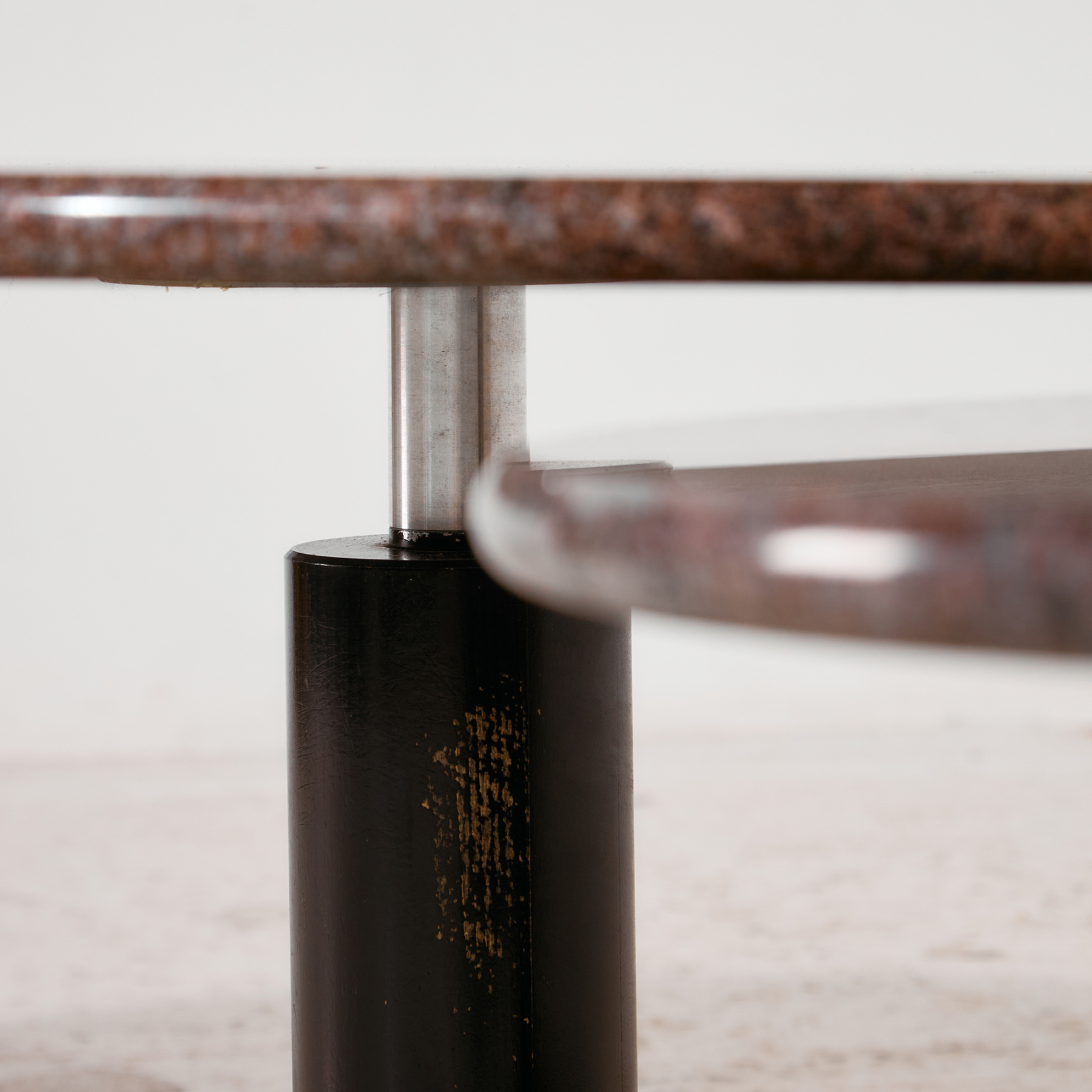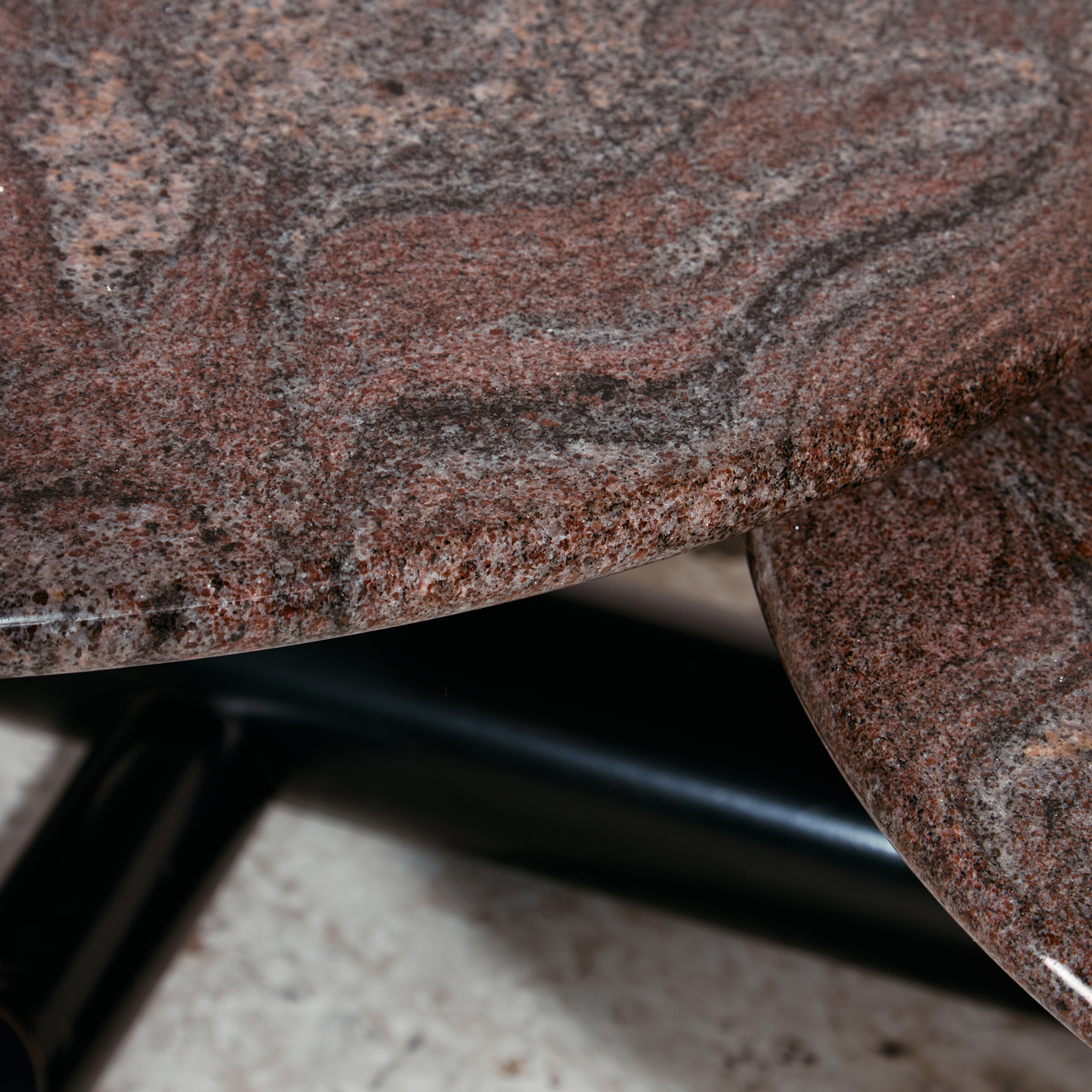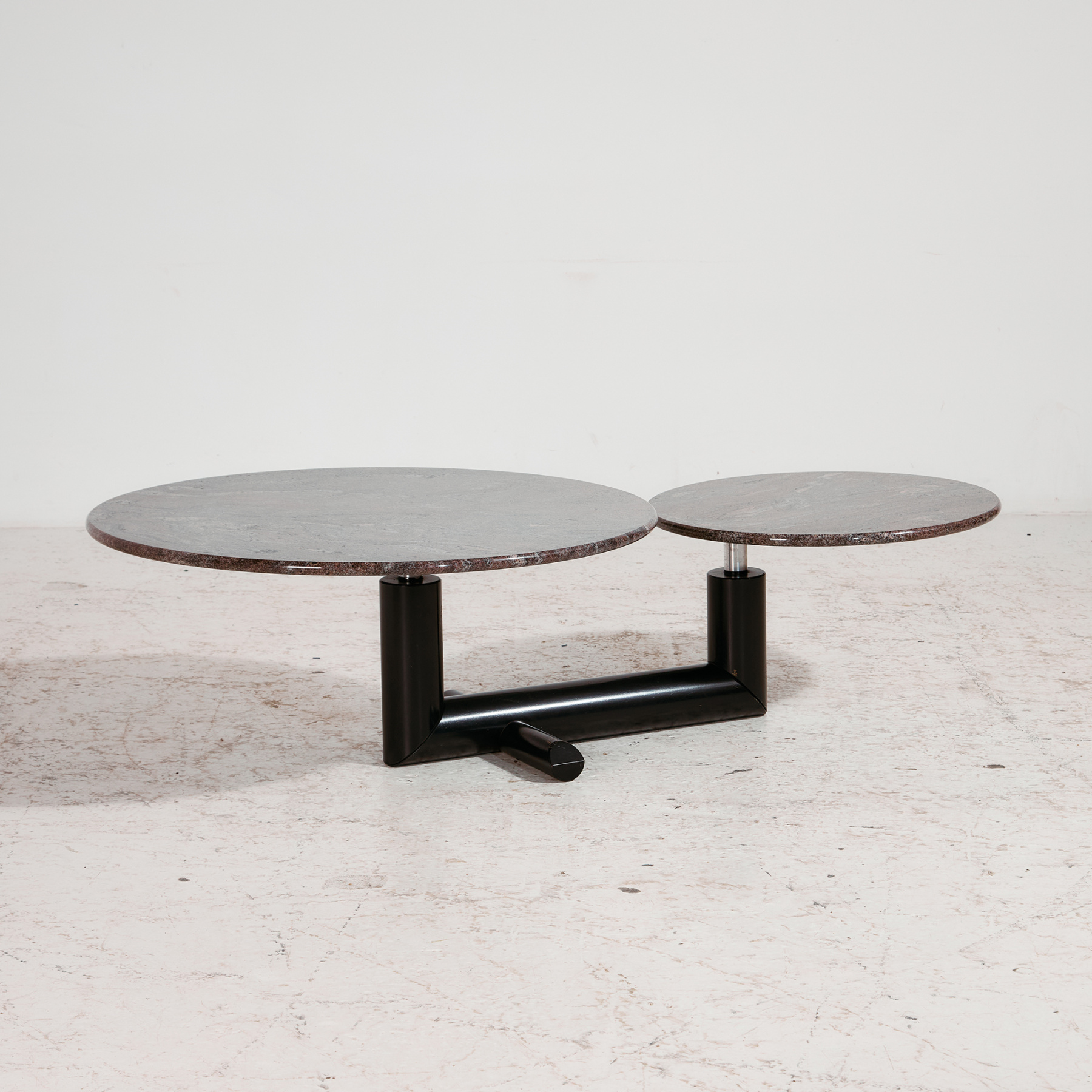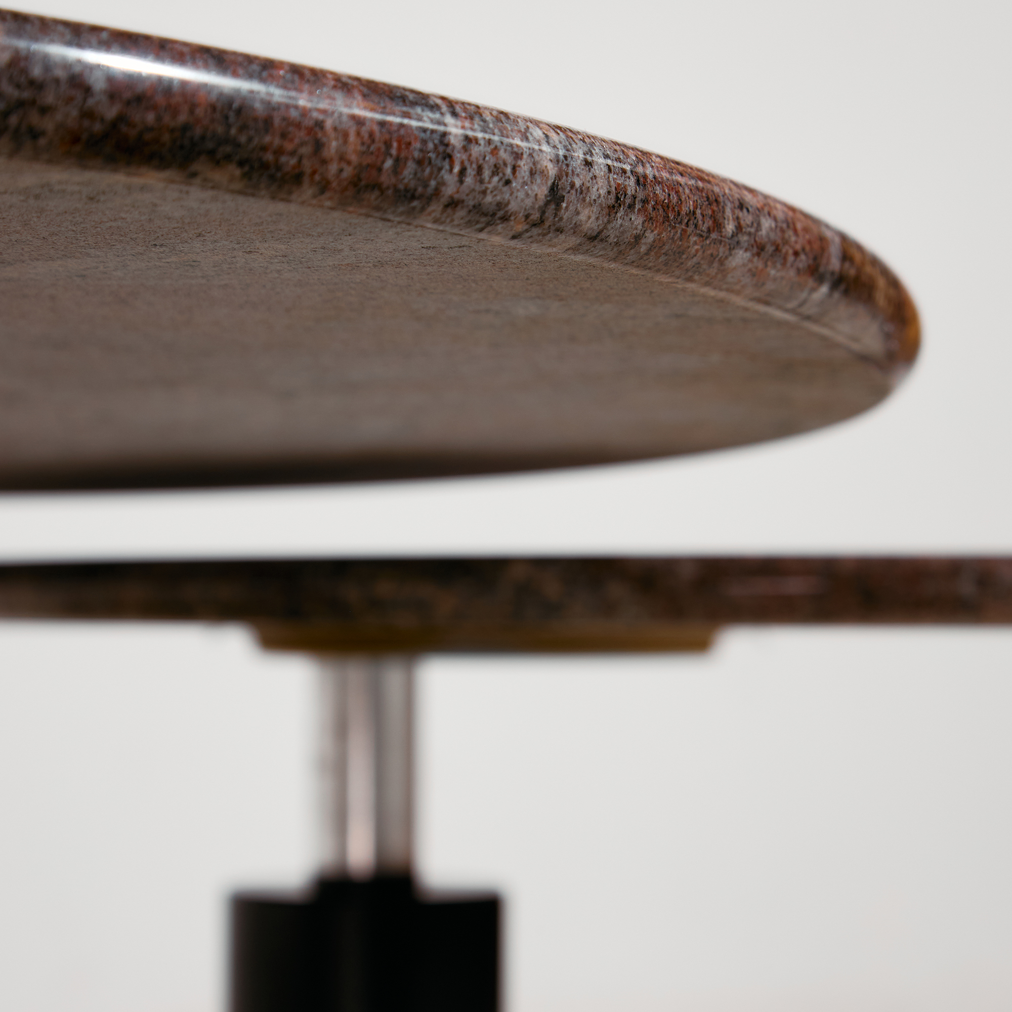 Egy igazi olasz posztmodern darab az 1980-as évekből. Izgalmas formákkal ellátott Up & Up dohányzóasztal kettő darab mozgatható gránit tetővel, bükkfa lábazaton. Felületén helyenként karcokkal, foltokkal és kopásokkal.
