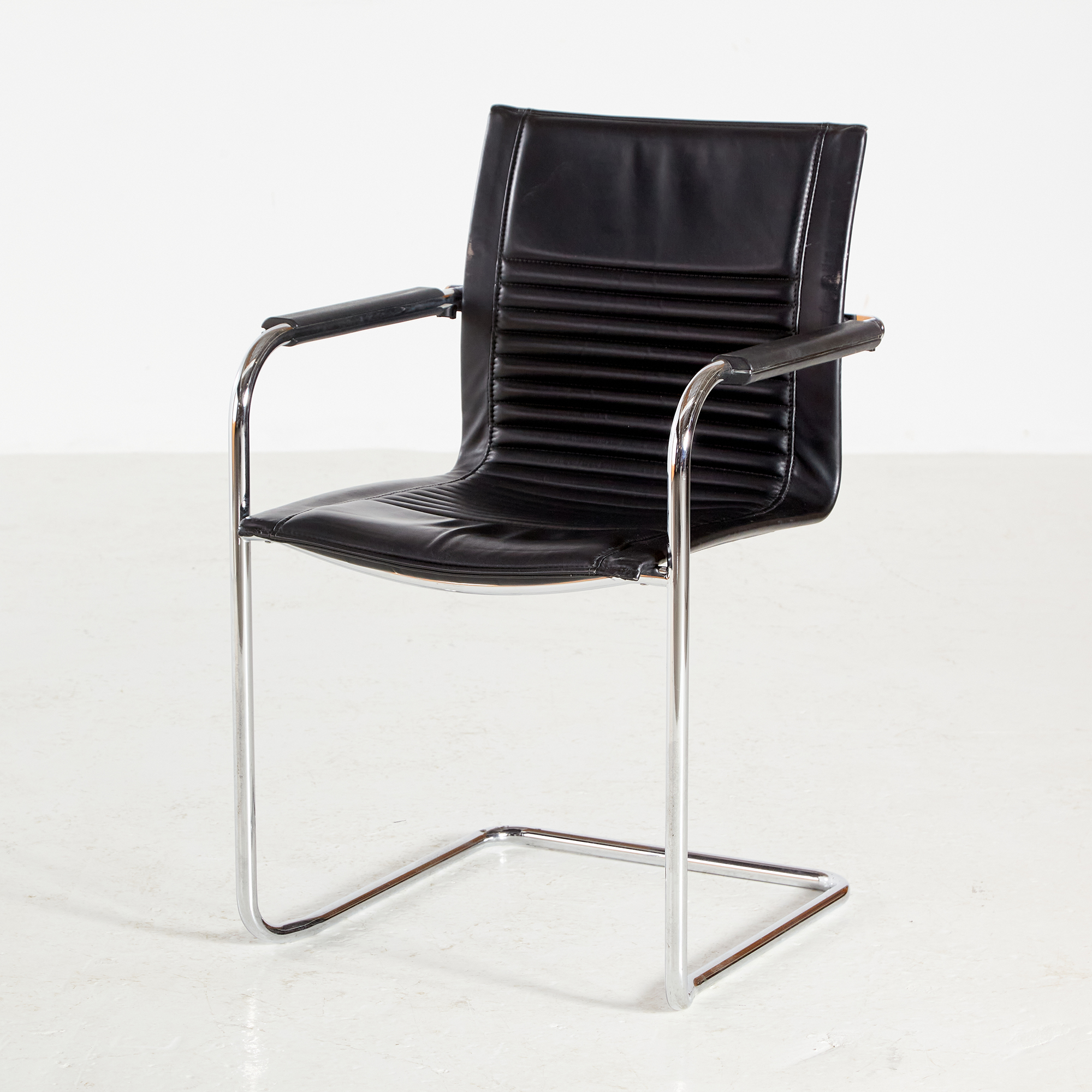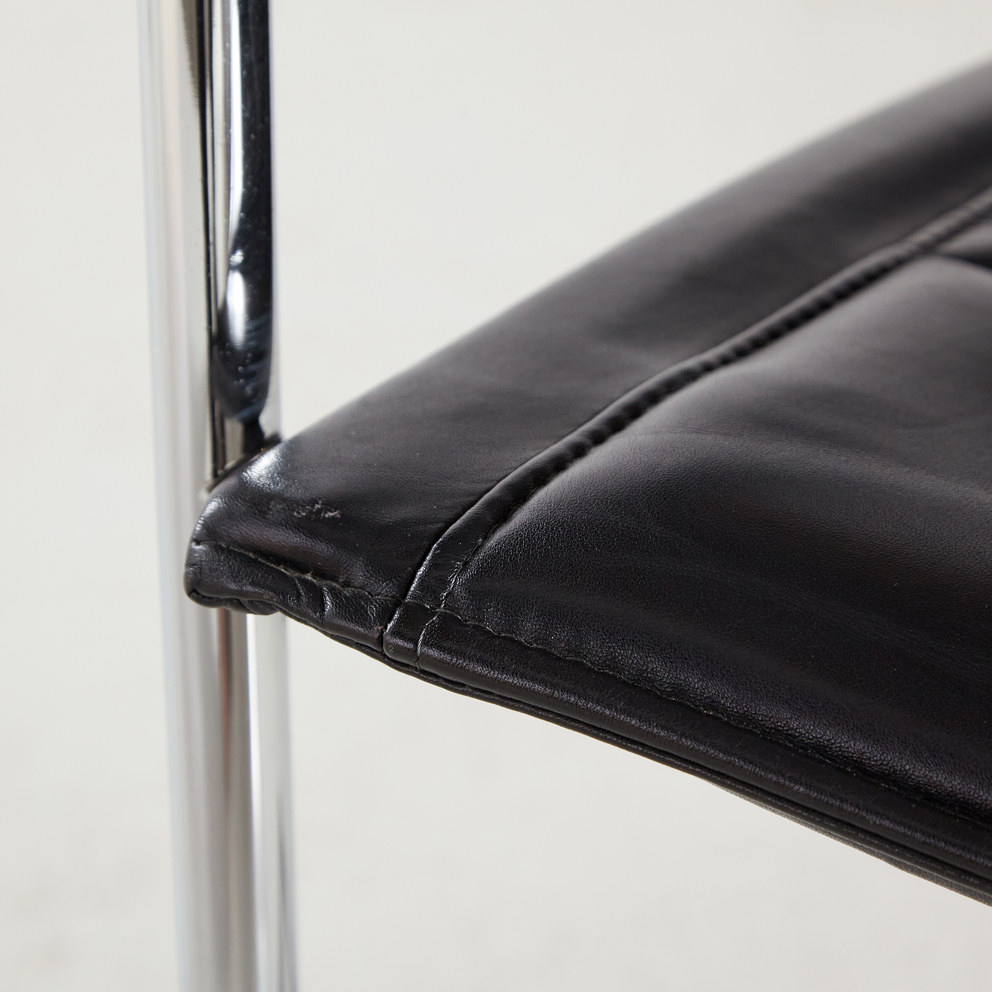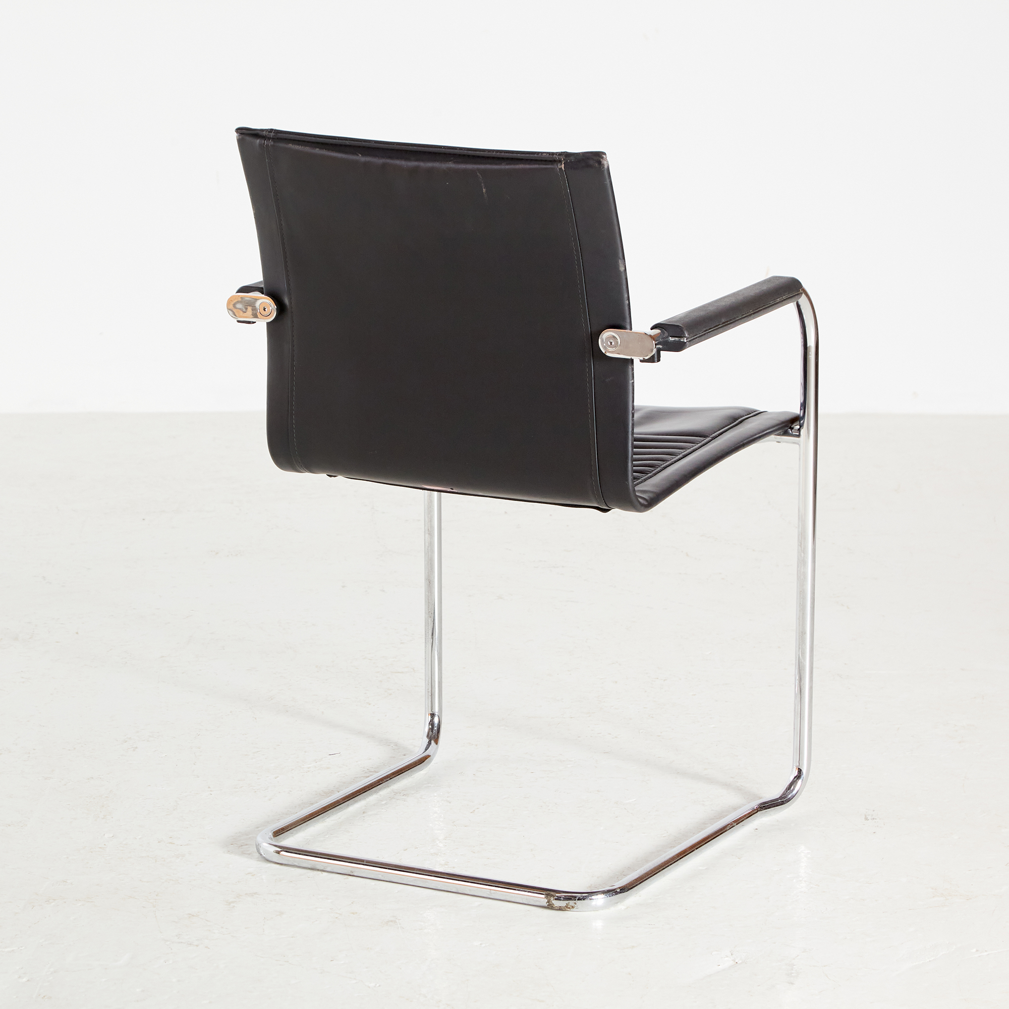 Walter Knoll Art Collection ‘Dialog’ karosszék a 2000-es évekből. A csővázon helyenként felületi karcolásokkal. A bőr jó állapotú, de az idő nyomot hagyott rajta!