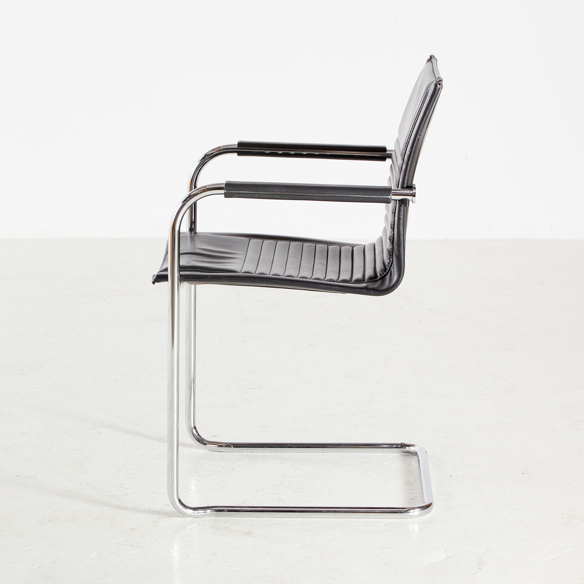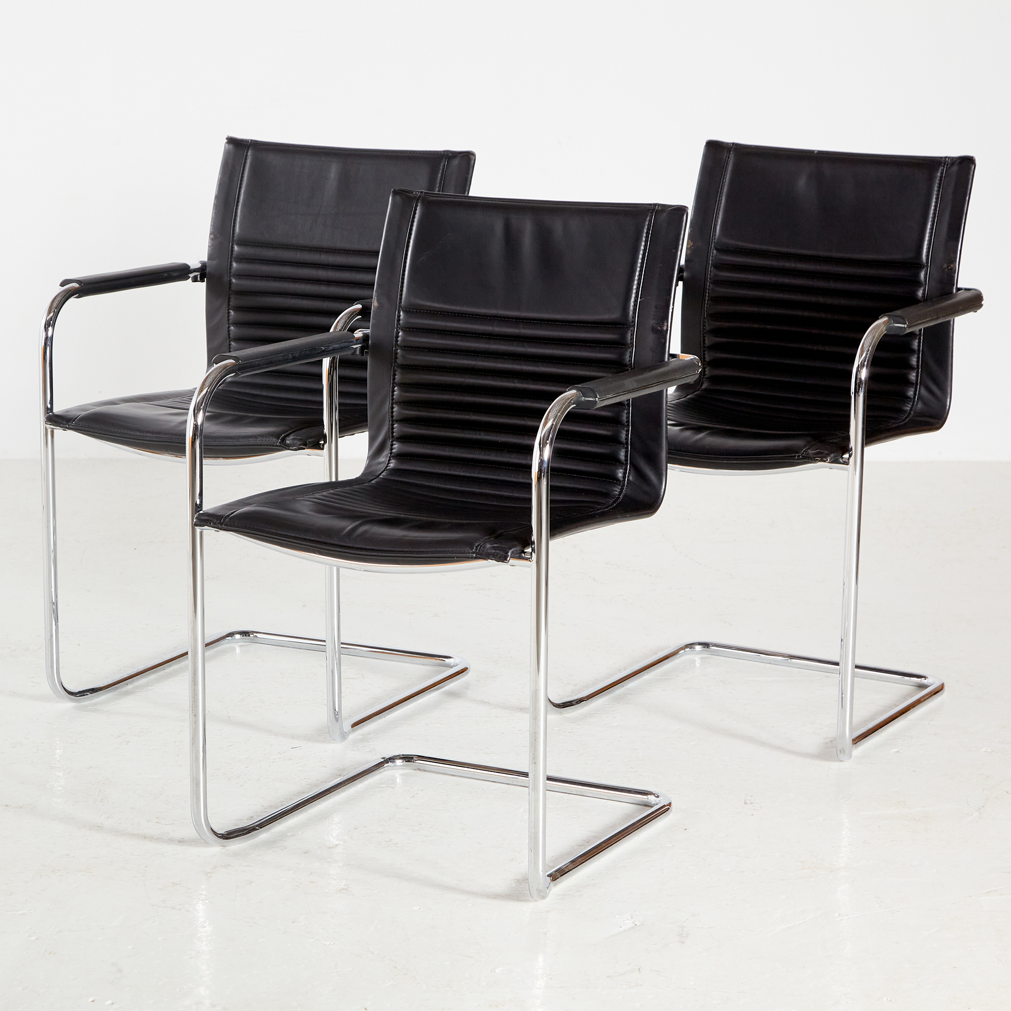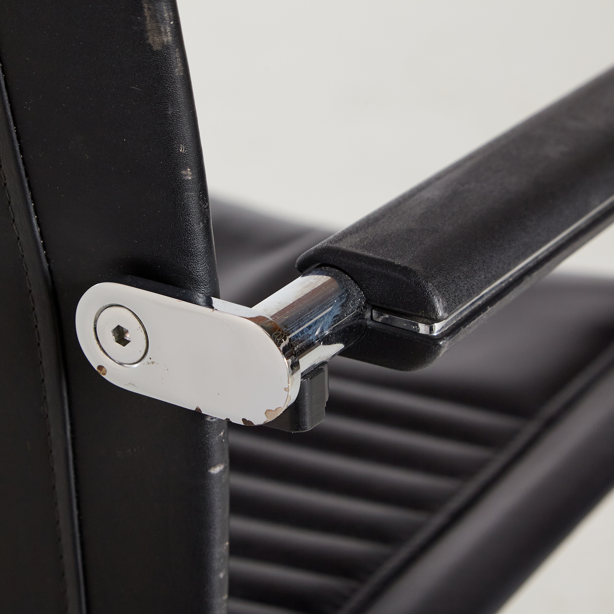 Walter Knoll Art Collection ‘Dialog’ karosszék a 2000-es évekből. A csővázon helyenként felületi karcolásokkal. A bőr jó állapotú, de az idő nyomot hagyott rajta!